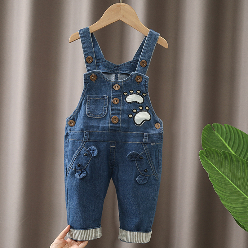 宝宝牛仔背带裤男女春秋卡通宝宝连体裤儿童秋季长裤小童休闲裤子