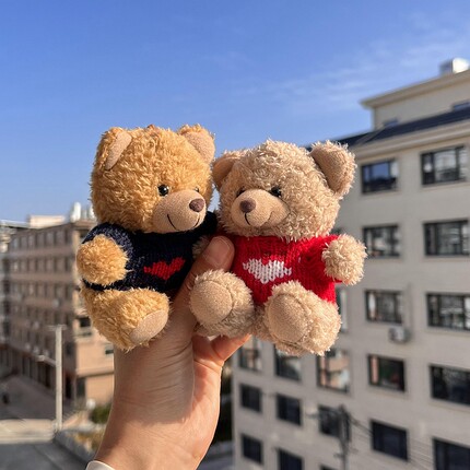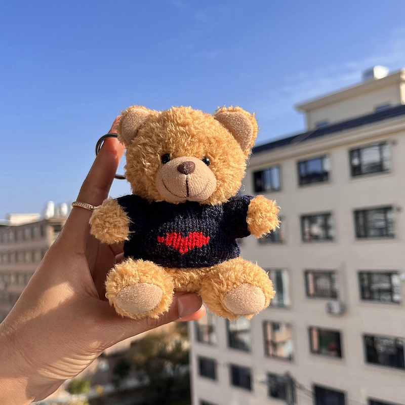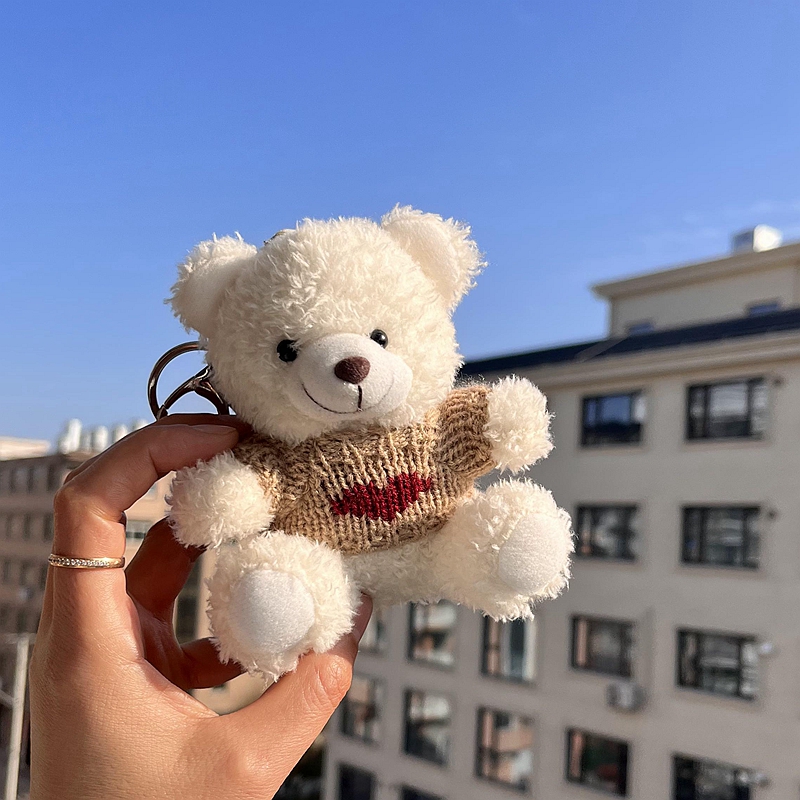 韩国ins可爱毛衣小熊包包挂件甜美卷毛毛绒泰迪熊钥匙扣情侣礼物