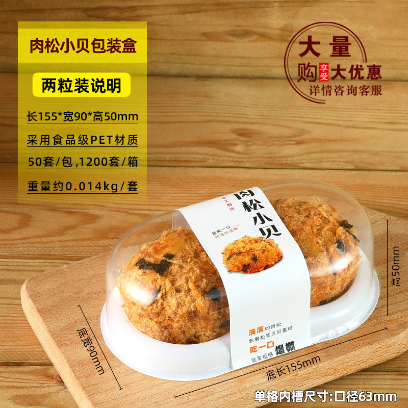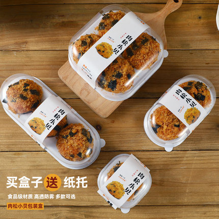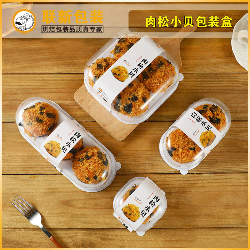 肉松小贝包装盒2粒3/4单个装透明蛋糕贴纸不干胶盒子一次性打包盒
