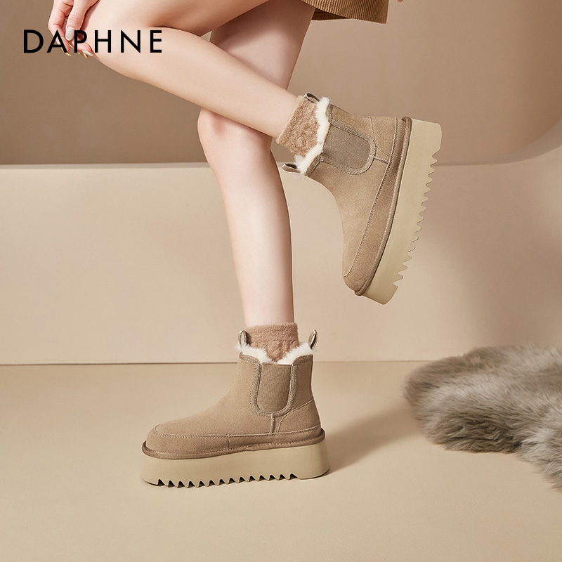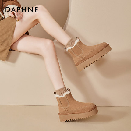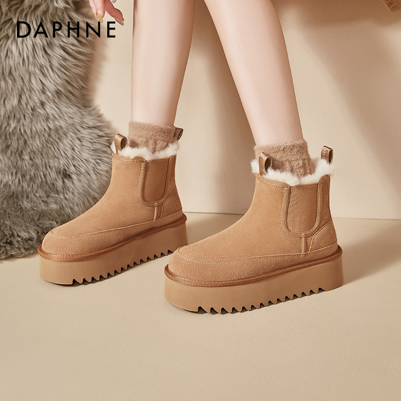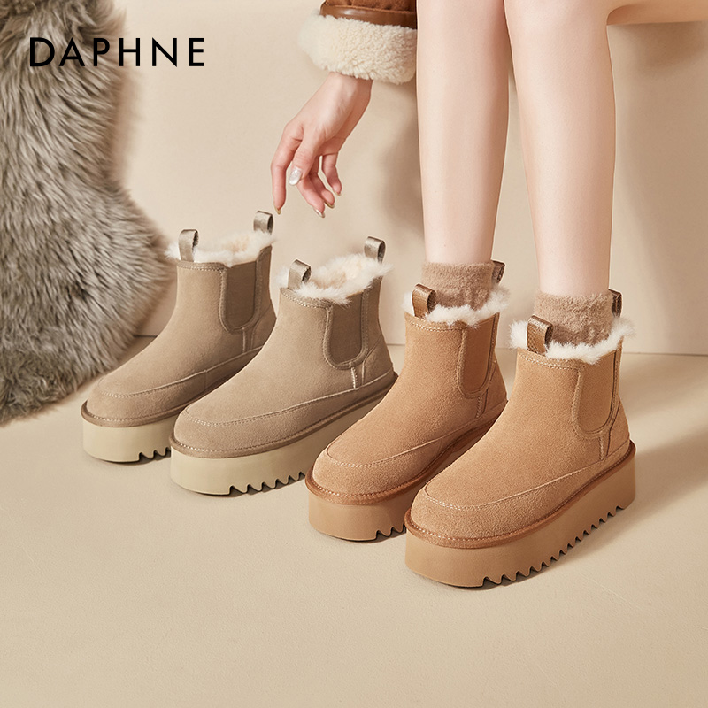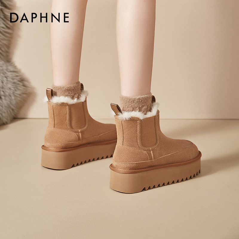 达芙妮厚底雪地靴女2025新款冬季加绒保暖东北棉鞋子增高面包短靴
