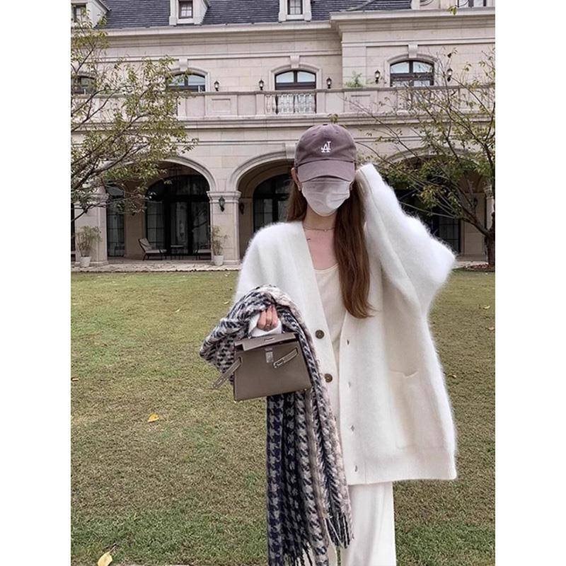 温柔软糯水貂绒中长款开衫毛衣女外套春秋冬宽松慵懒风v领针织衫