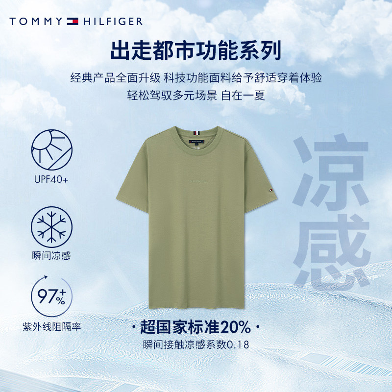 【防晒凉感】功能系列Tommy春夏男装纯色休闲运动内搭打底短袖T恤