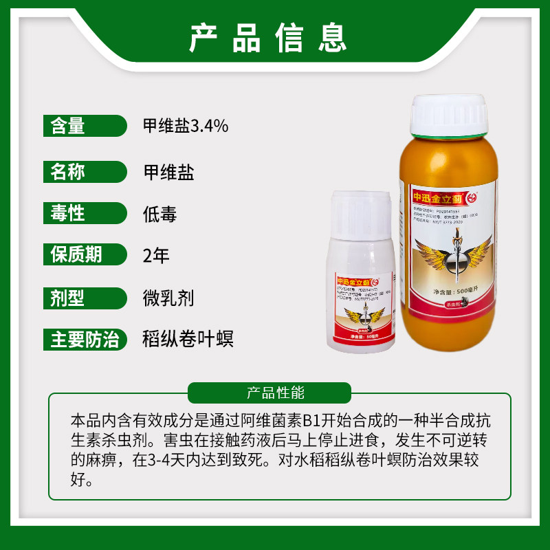 中迅金立蓟甲维盐水稻稻纵卷叶螟甲氨基阿维菌素苯甲酸盐杀虫剂