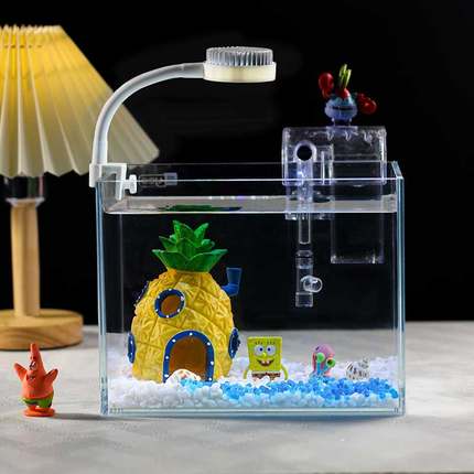 超白鱼缸玻璃小型客厅桌面全套海绵宝宝造景免换水斗鱼金鱼生态缸