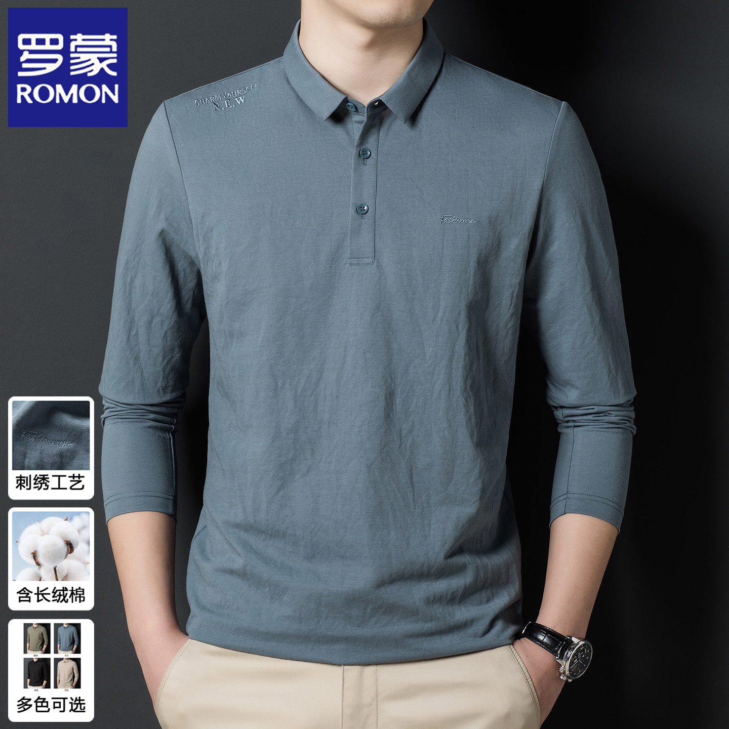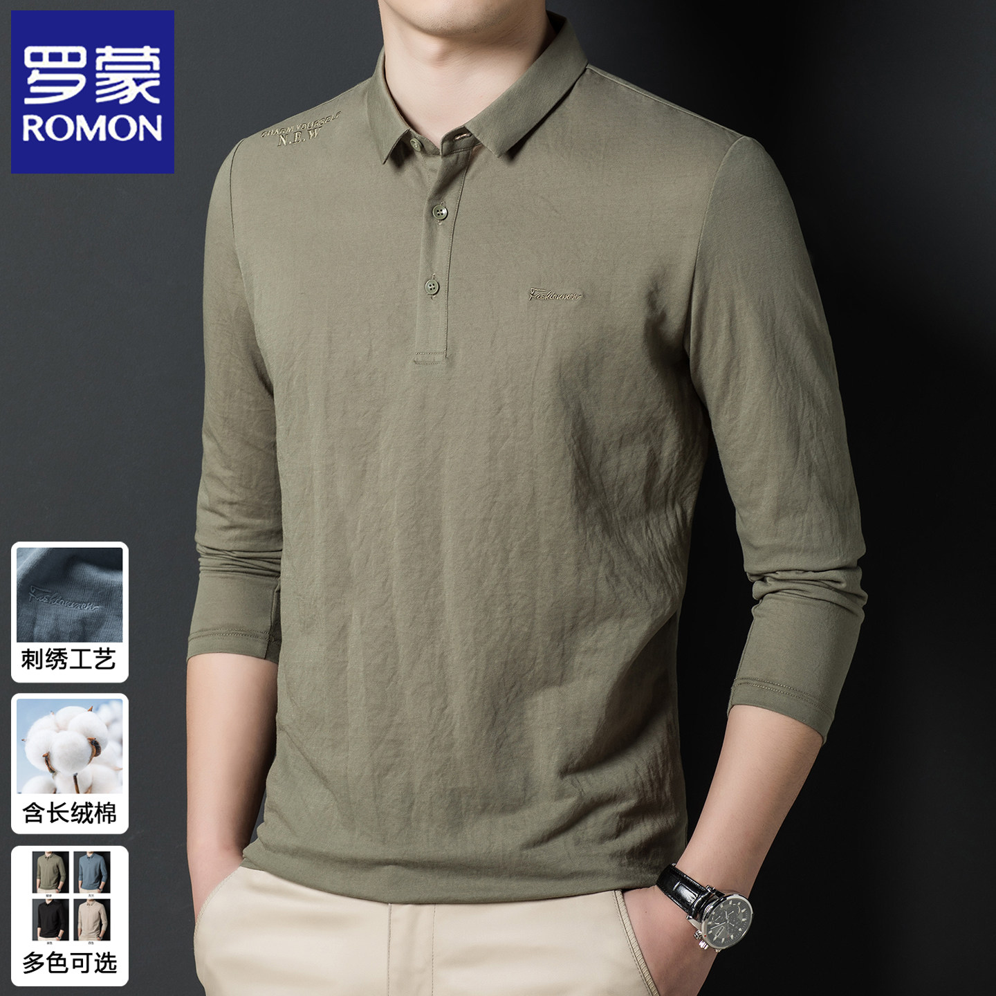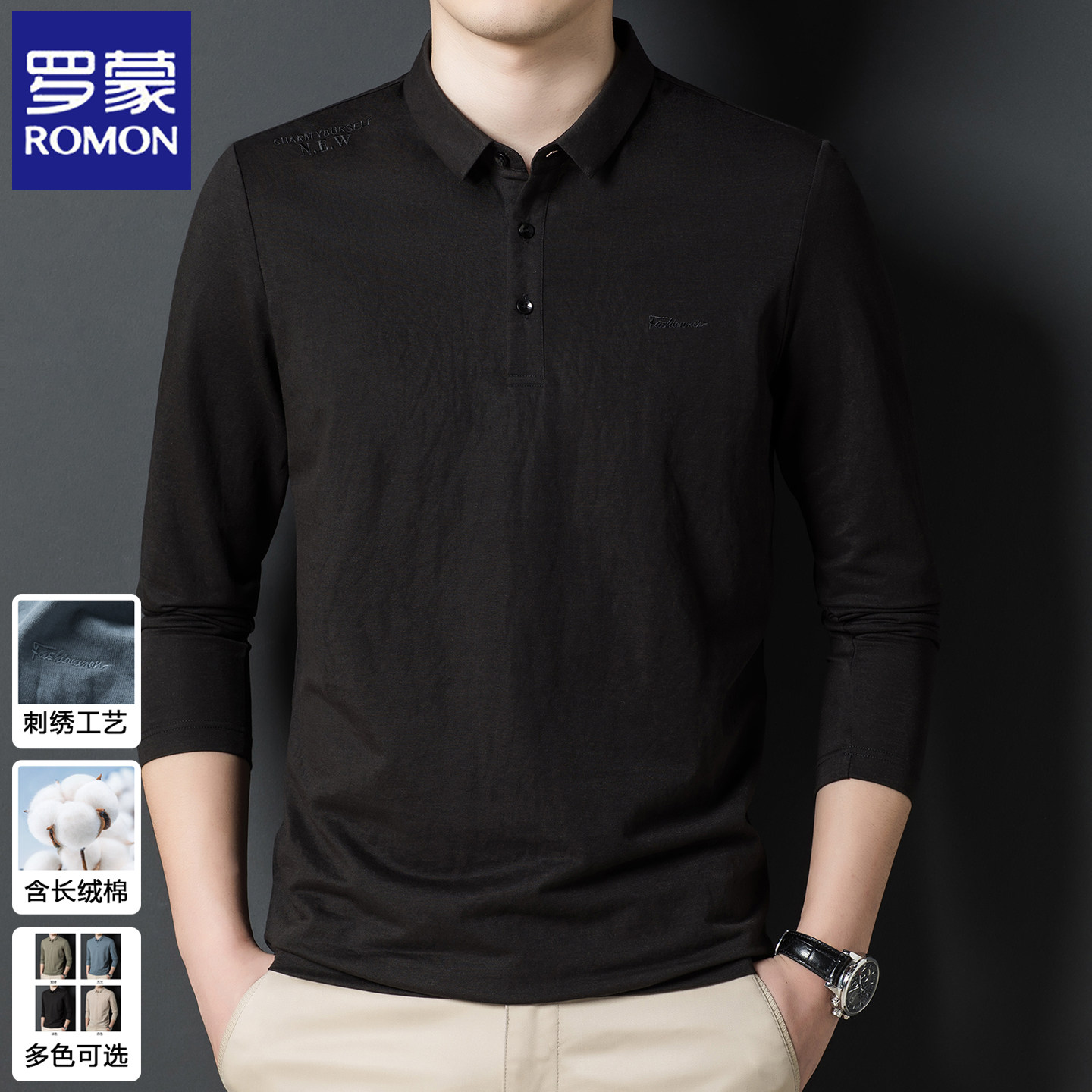 罗蒙2025春秋POLO衫长袖男士体恤