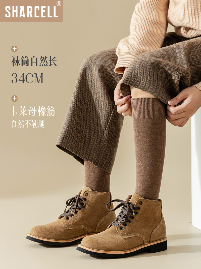 小腿袜子男士长筒袜纯棉秋冬季保暖100%正品西装商务高筒长袜
