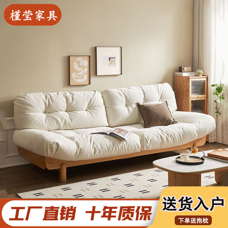 日式沙发实木框架客厅小户型北欧简约储物三人现代布艺原木侘寂风