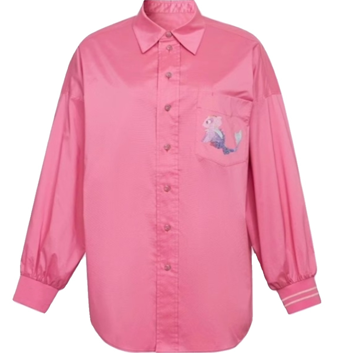 阿玛施女装正品2025春秋季新款宽松小恐龙中长款长袖衬衫5301081