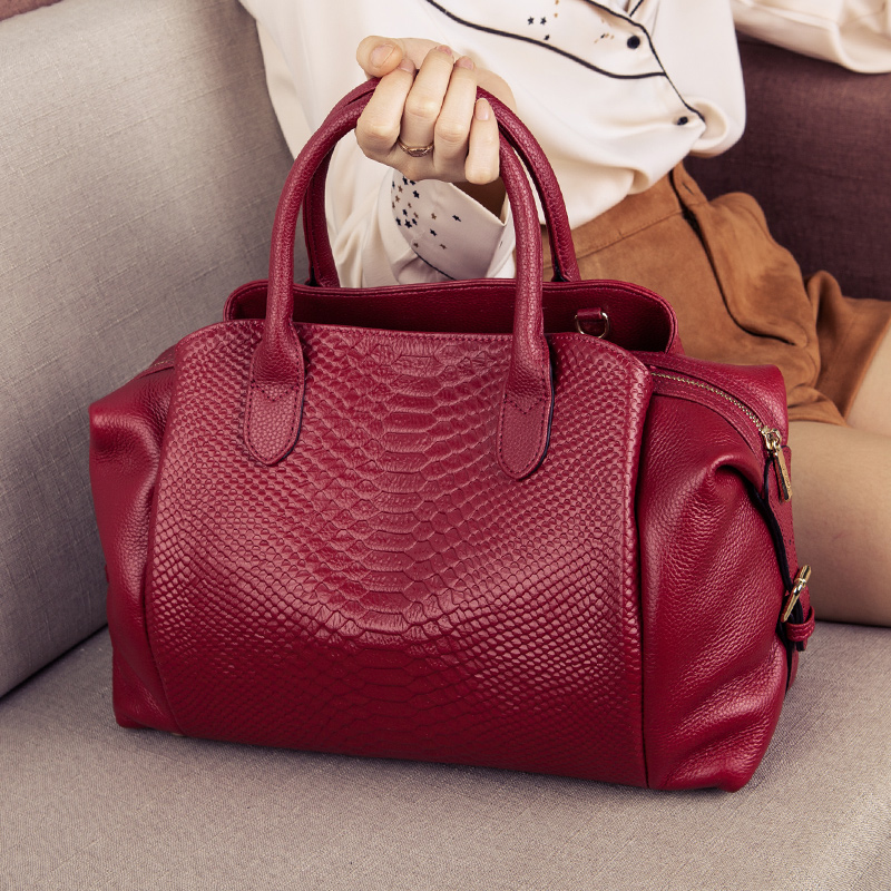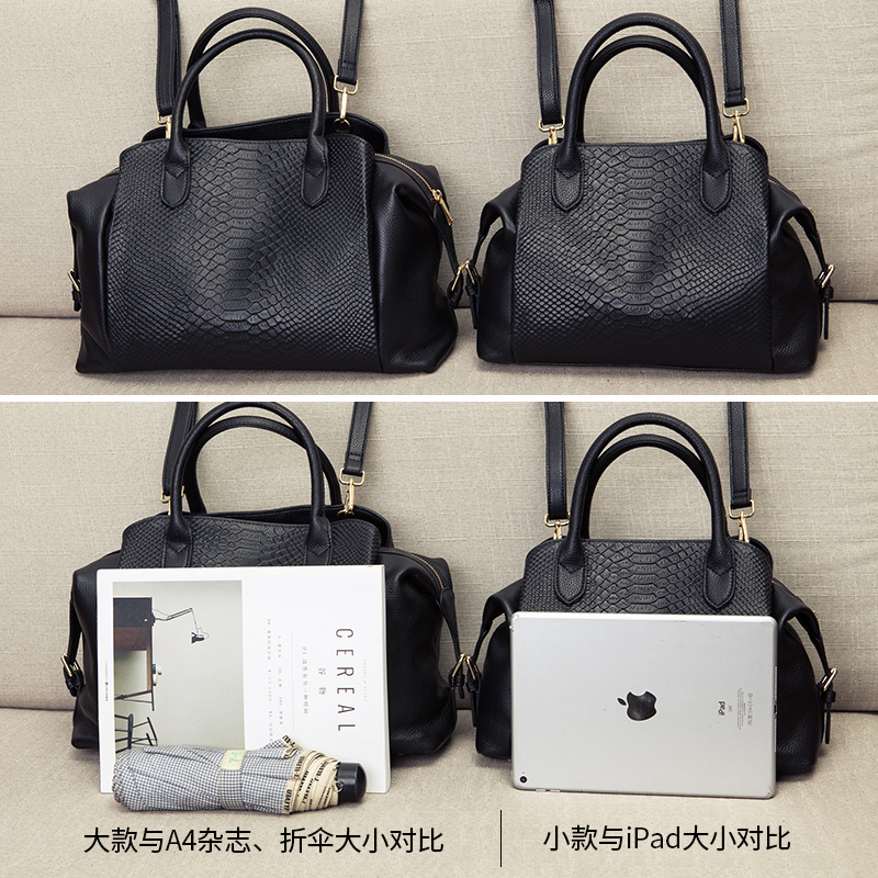 手提包女2025新款真皮女包大包大容量时尚鳄鱼纹斜挎波士顿枕头包