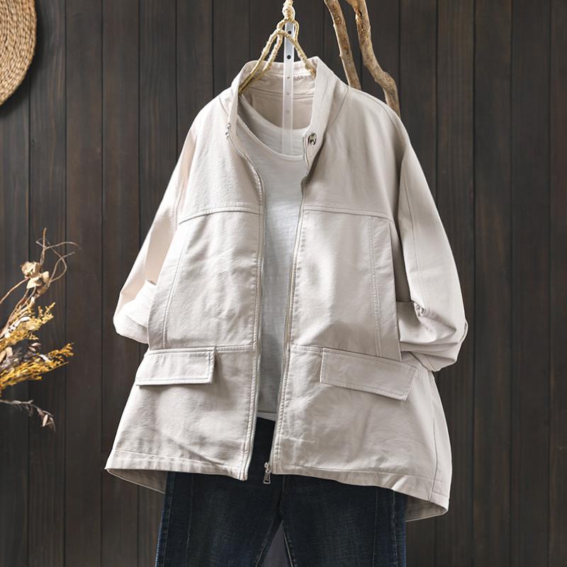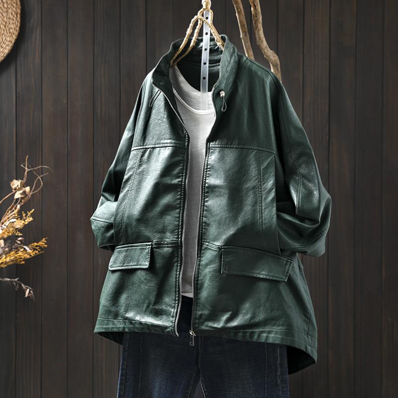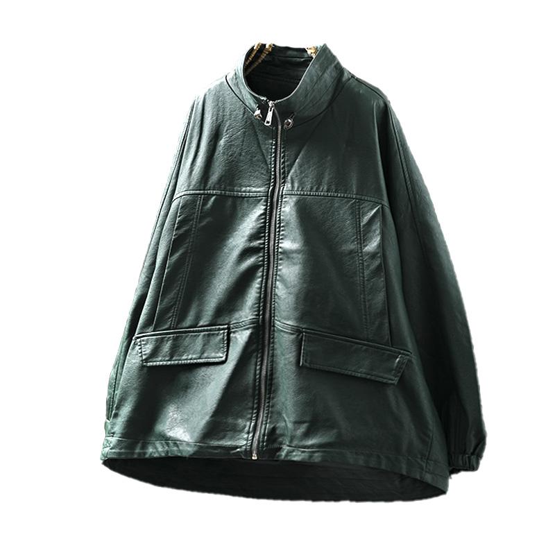立领黑色皮衣外套女士宽松大码2025春季新款气质pu皮机车服夹克潮