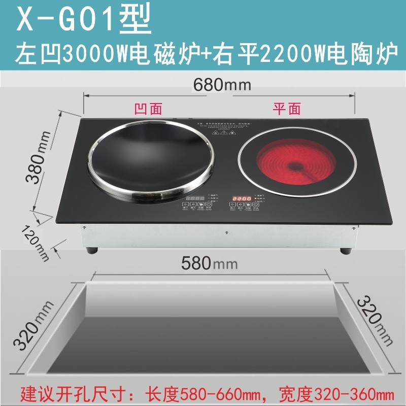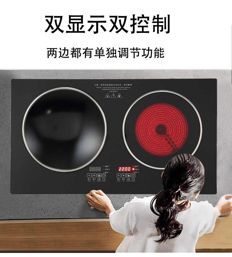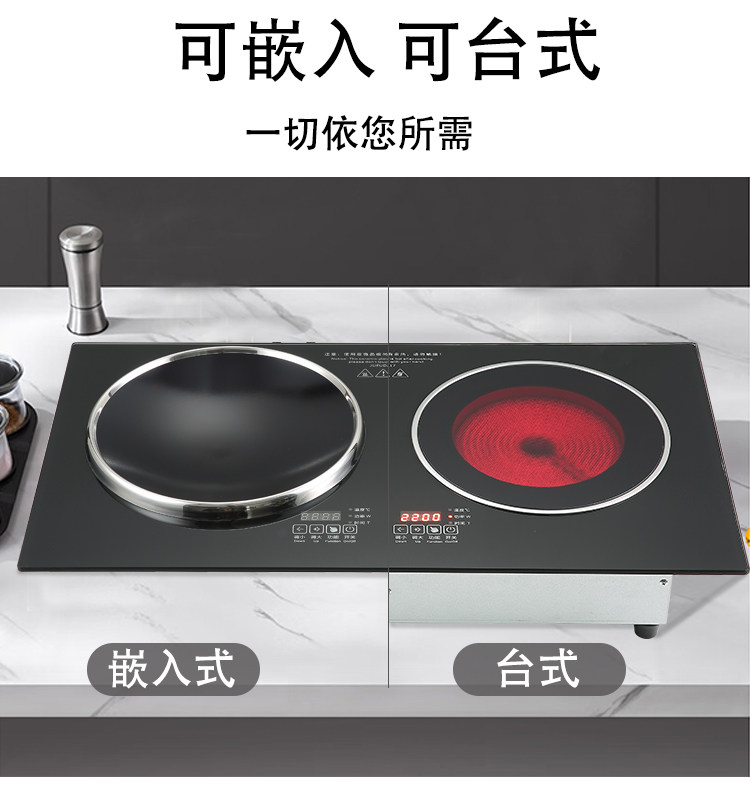 小开孔尺寸凹面嵌入式电磁炉双炉小空间公寓双头凹槽电陶迷你双灶