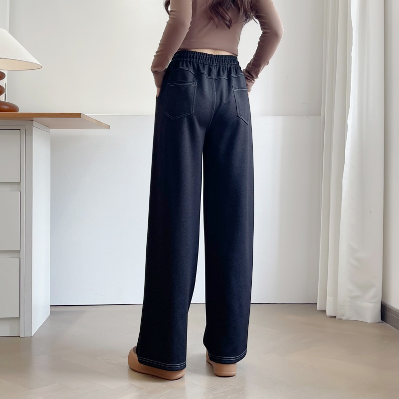 秋季女装韩版新款软牛仔裤大码设计感高腰显瘦直筒阔腿裤休闲长裤