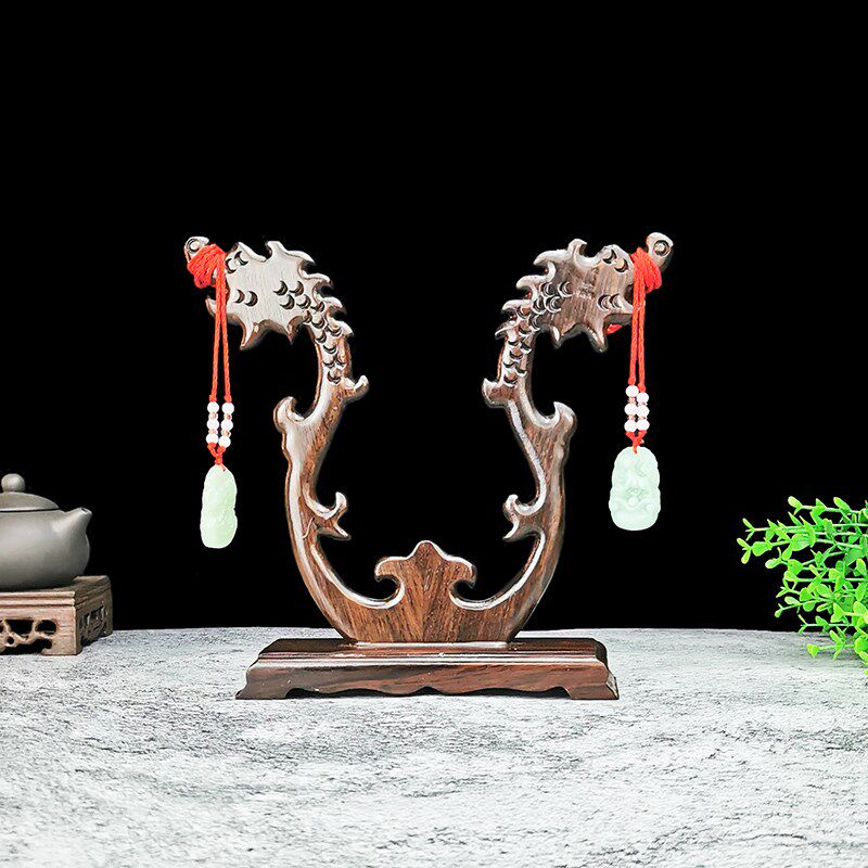 精选实木吊玉架超大号项链架翡翠挂玉架酸枝木首饰架龙头木雕摆件