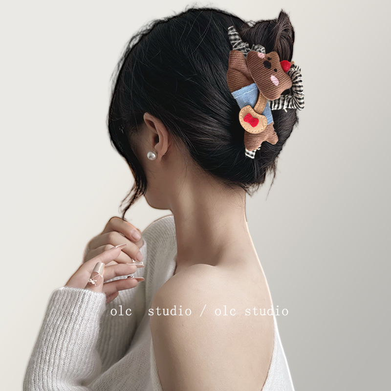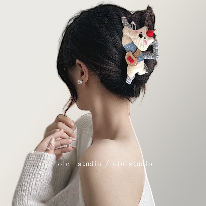 憨熊幻彩!趣味可爱卡通小狗蝴蝶结发夹立体玩偶抓夹后脑勺旅行卡