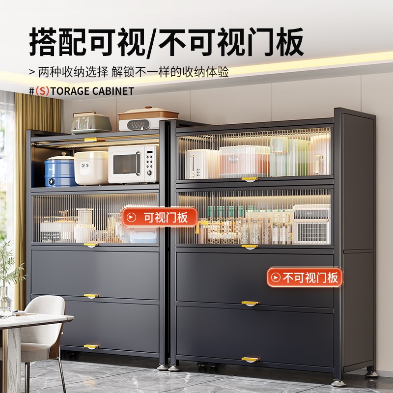 钢制厨房置物架落地多层收纳柜子A微波炉家用带门多功能橱柜储物