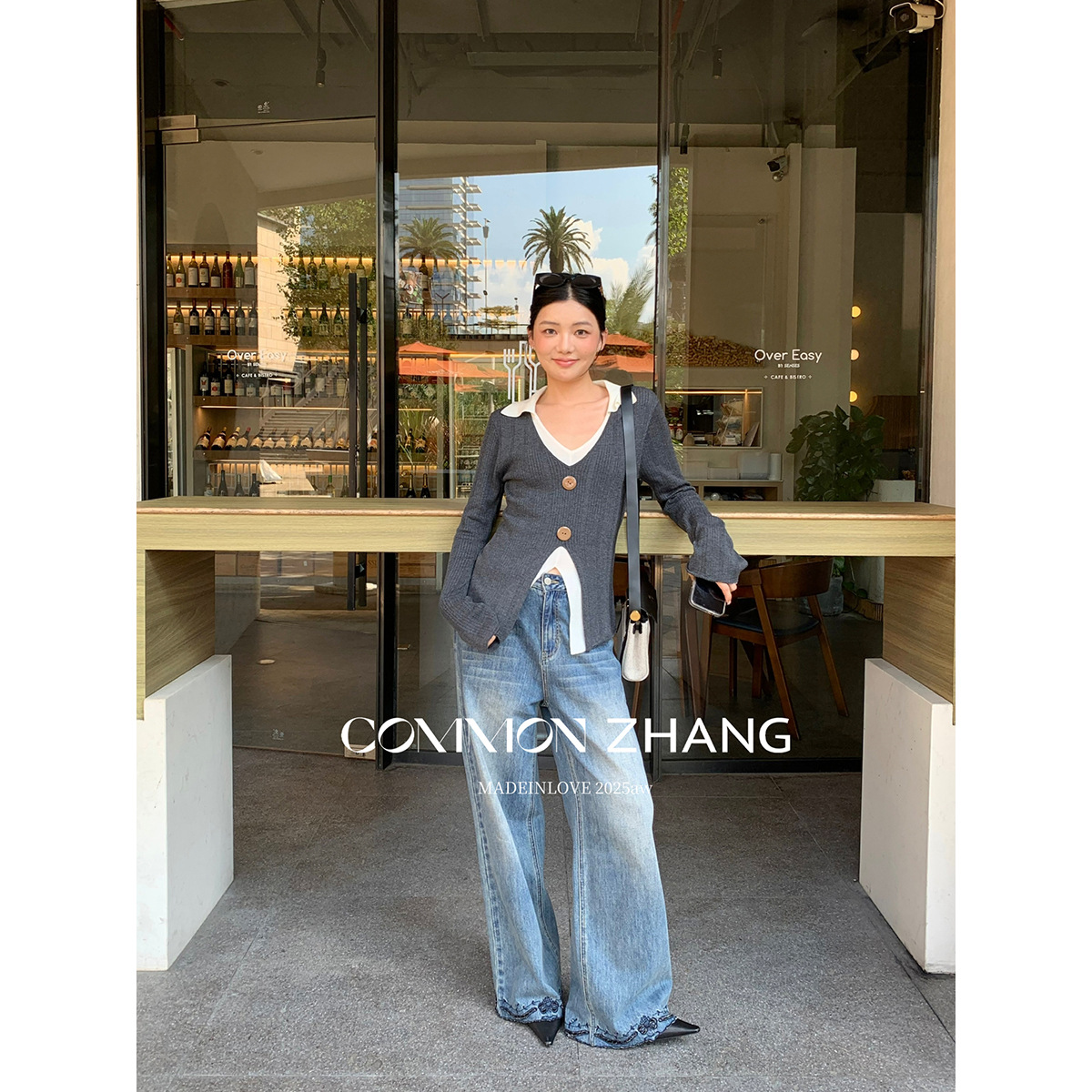 假两件撞色V领套头针织衫女秋季