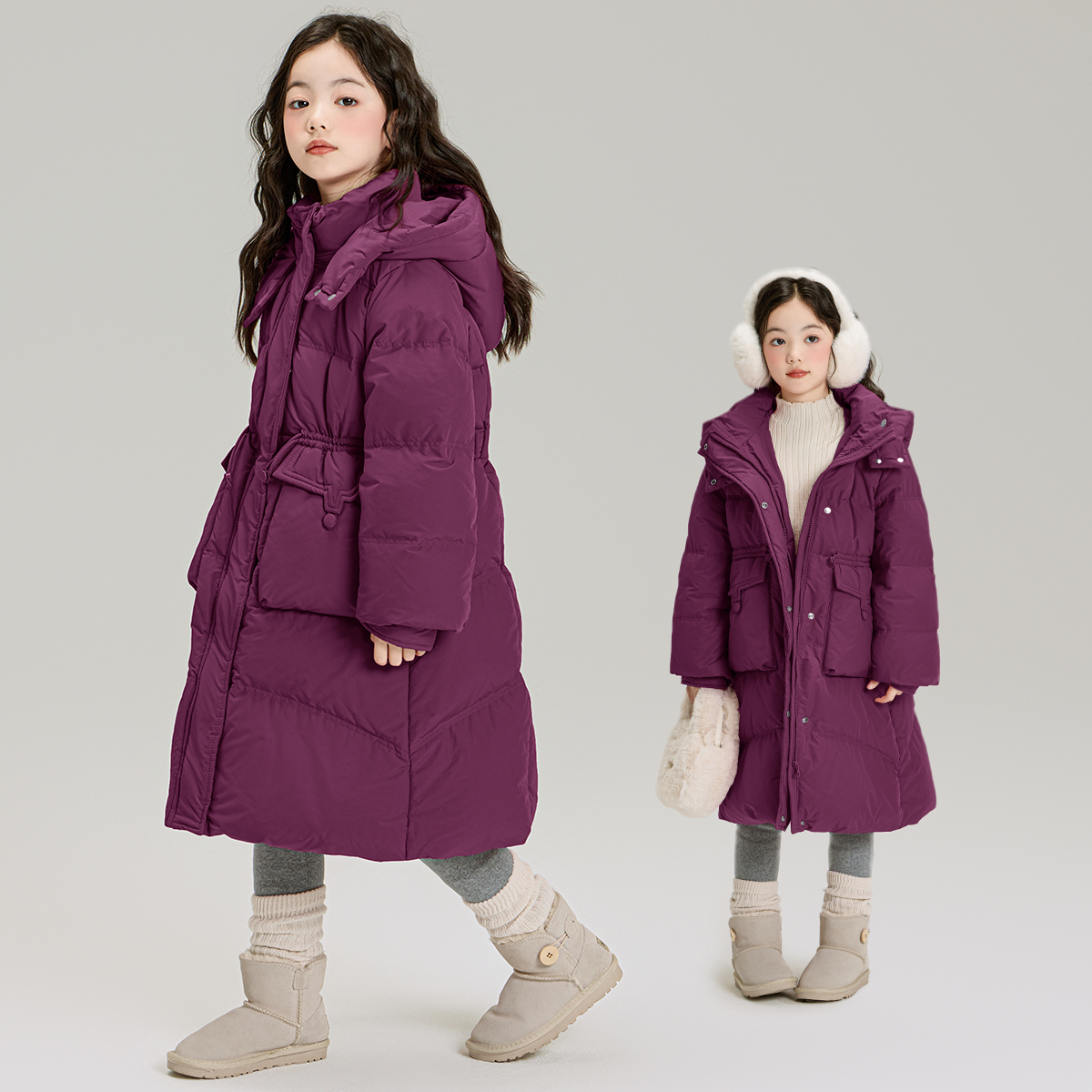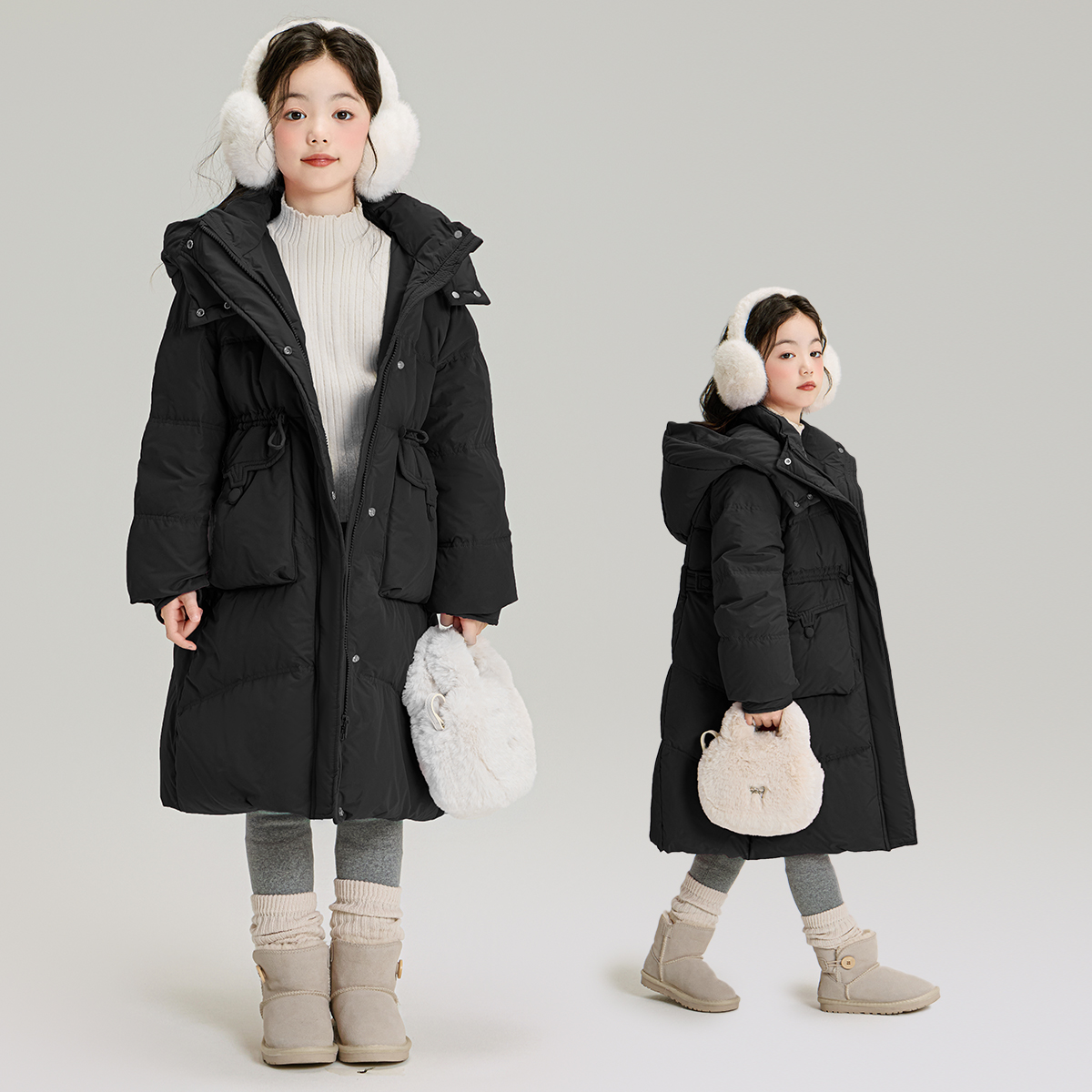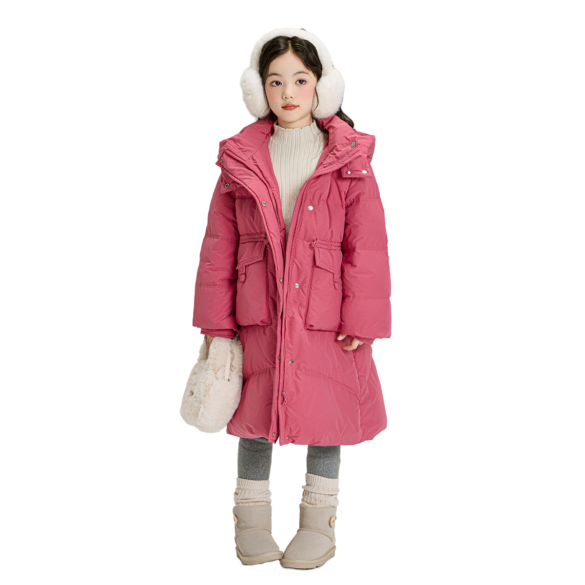 女童棉衣冬装新款洋气中长款韩版中大童保暖收腰宽松连帽加厚棉服