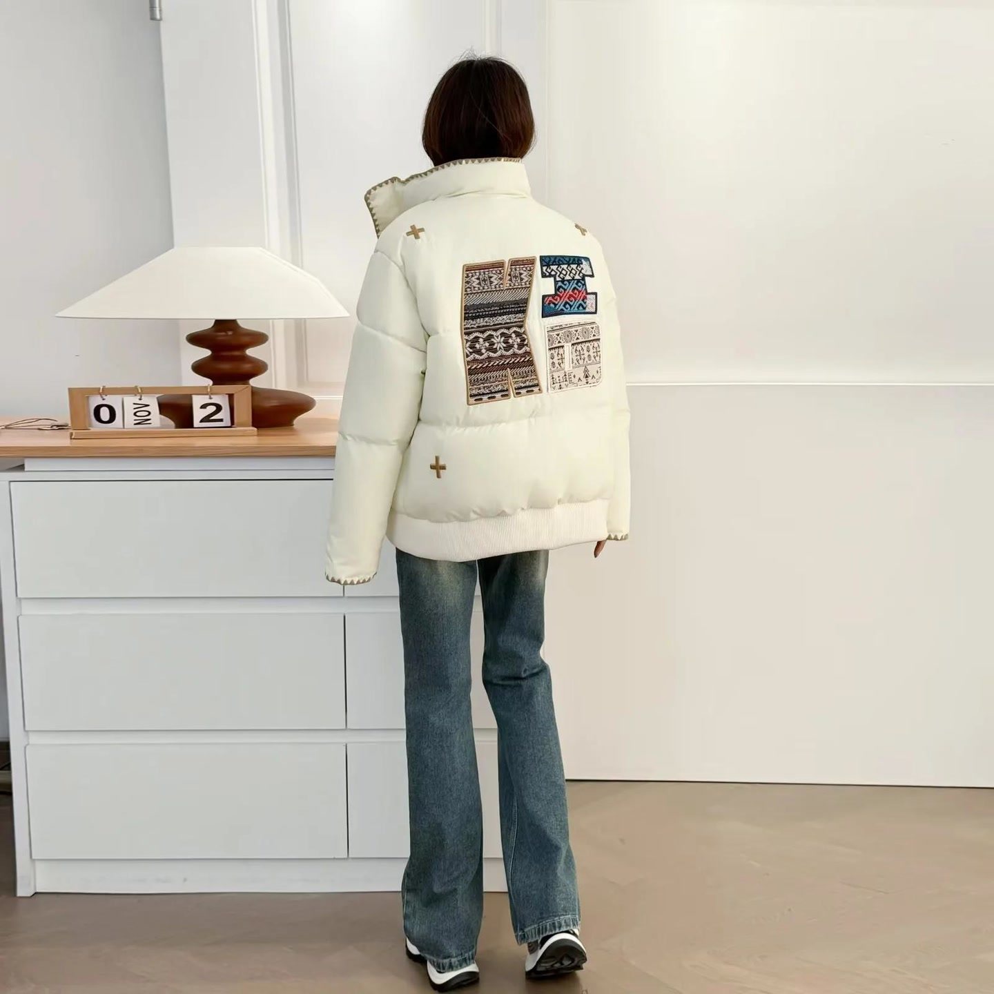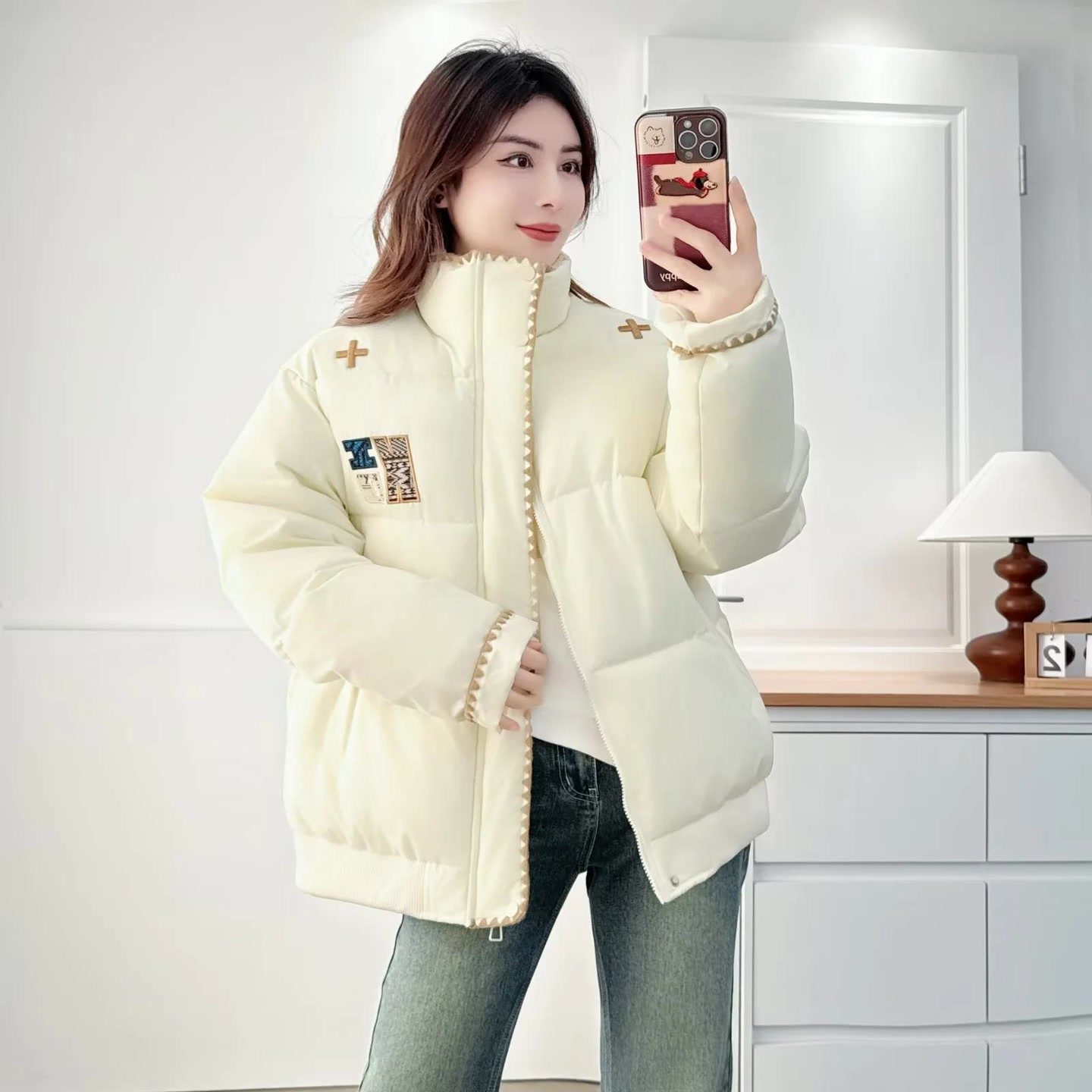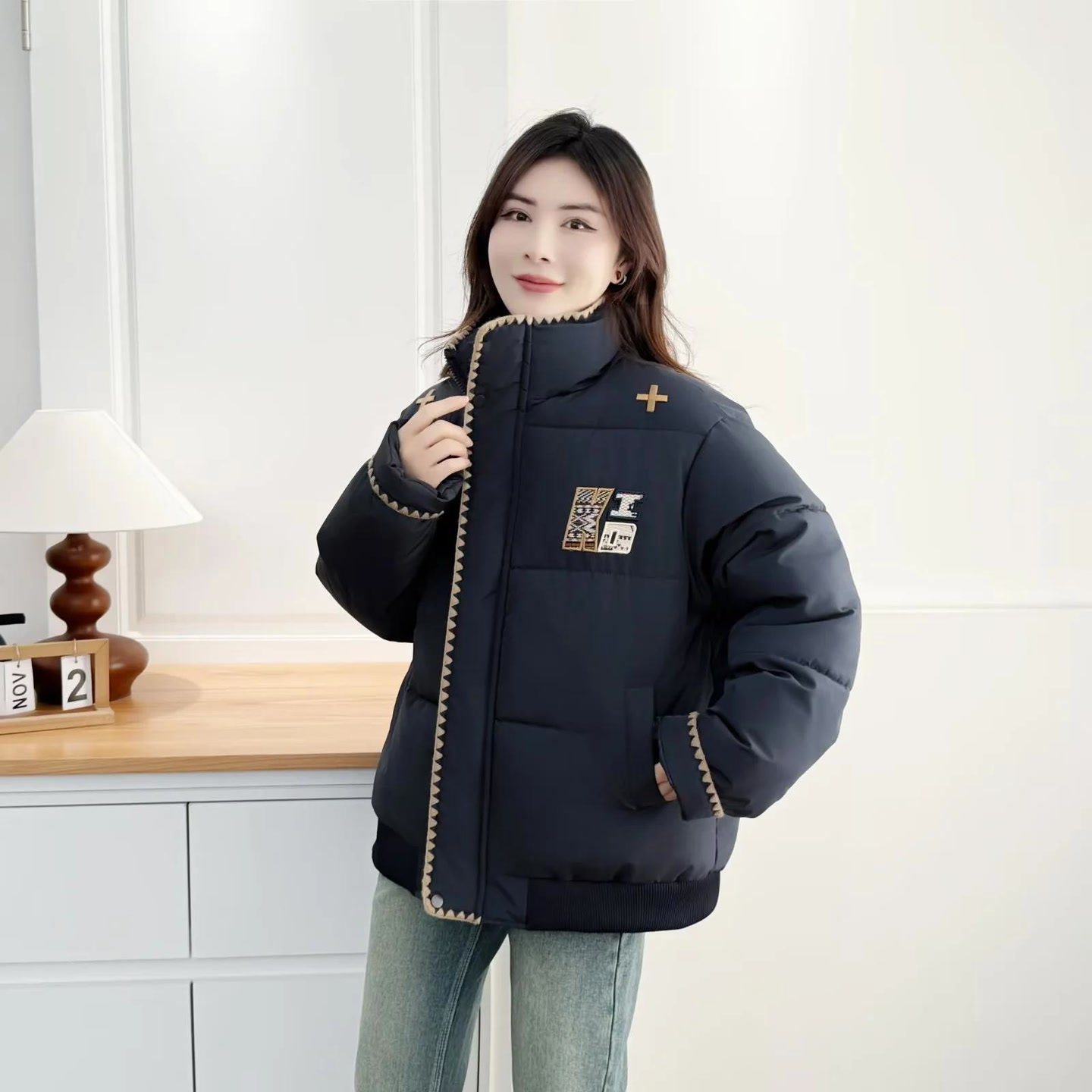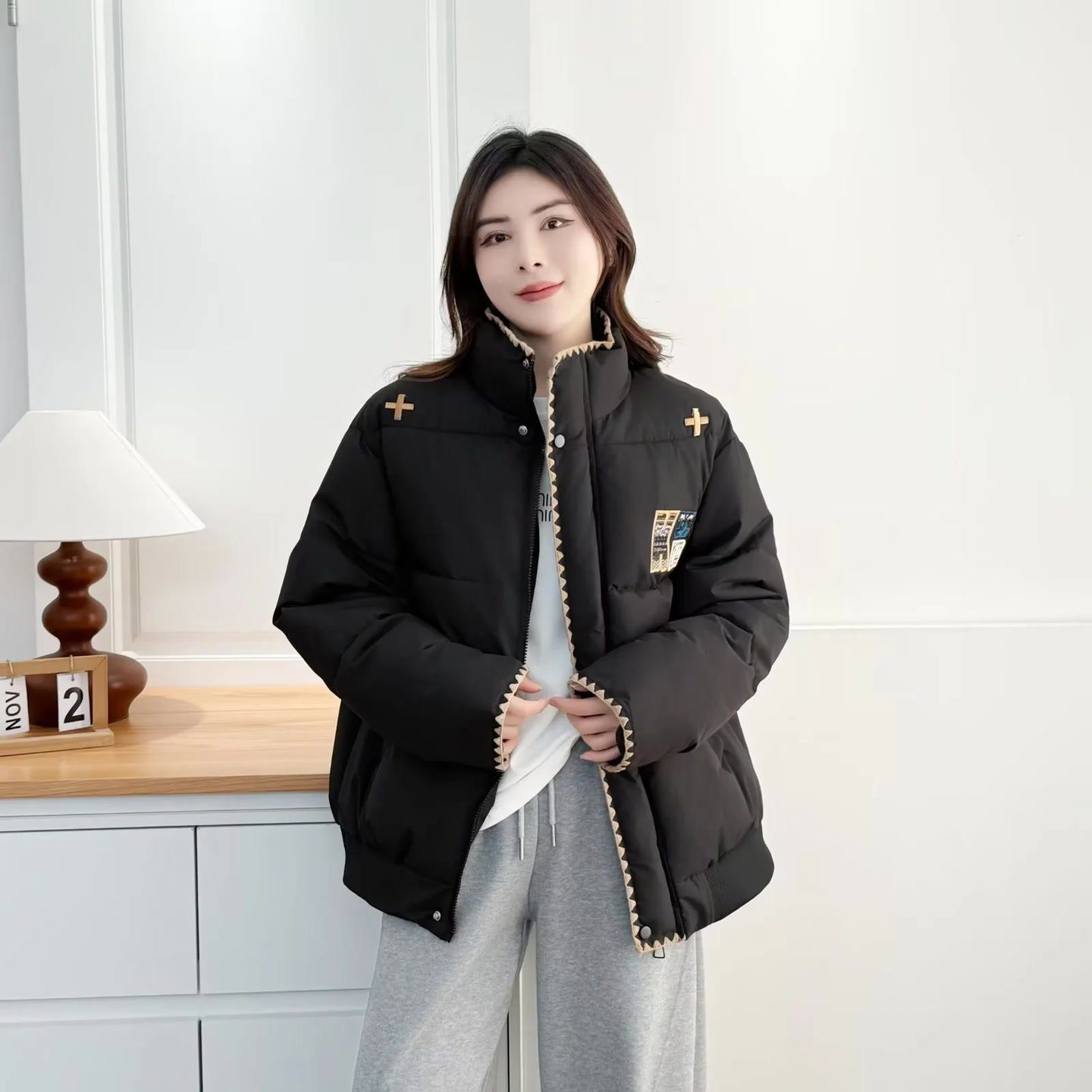 2025胖mm冬装新款女装炸街刺绣大码面包服中年棉衣立领气质女棉袄