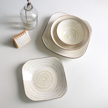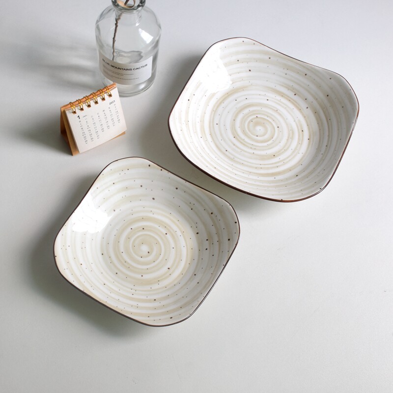陶瓷芝麻点釉四方盘家用盘子