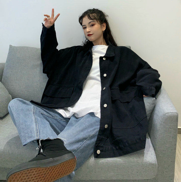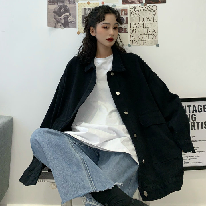 工装牛仔外套女秋冬新款大码胖妹妹原宿风宽松显瘦夹克上衣ins潮