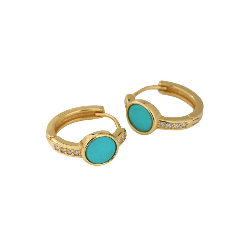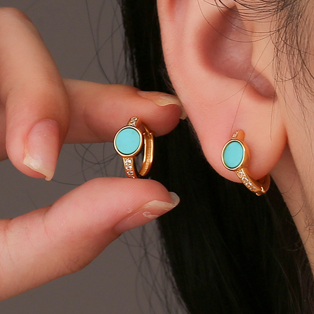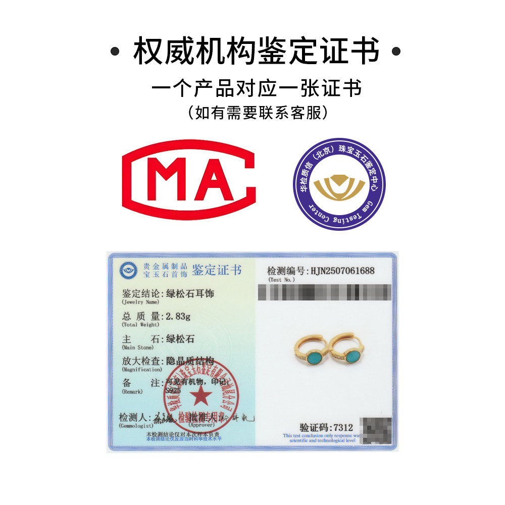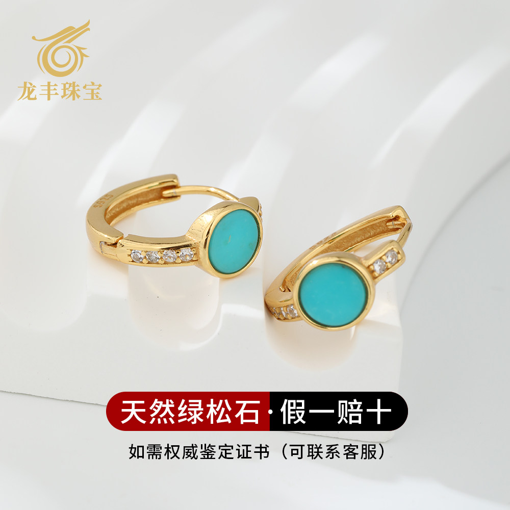 龙丰绿松轩S925银镀18k金正品天然绿松石圆形耳扣女款高级感耳饰