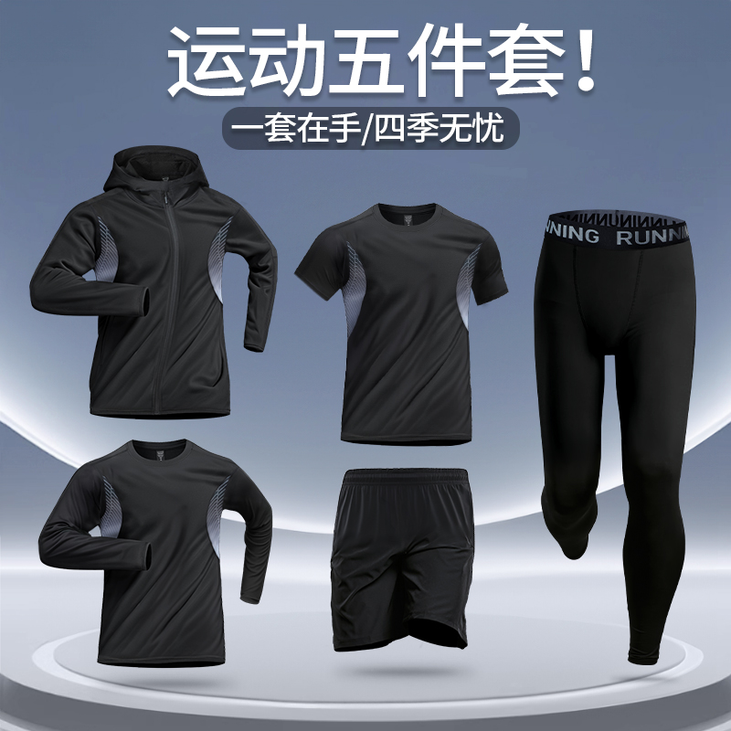 健身衣套装男春秋冬季跑步装备运动衣晨跑服骑行紧身速干衣健身房