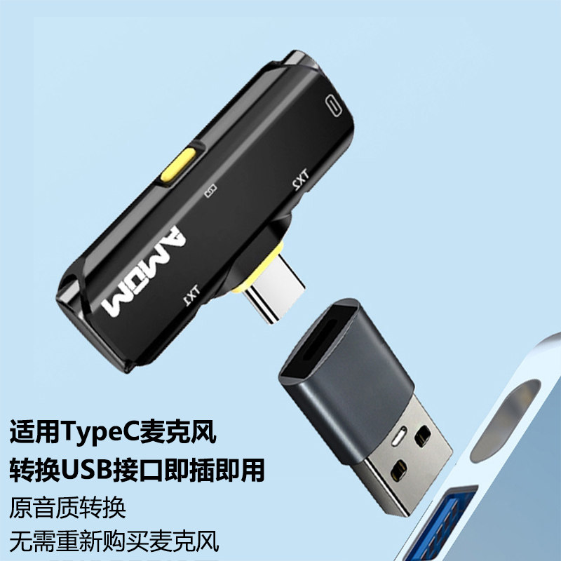 无线麦克风领夹式连接台式电脑笔记本USB直主播转接头适用纽曼索爱飞利浦猛玛M1悦声S1纽扣金运收音麦转接头2