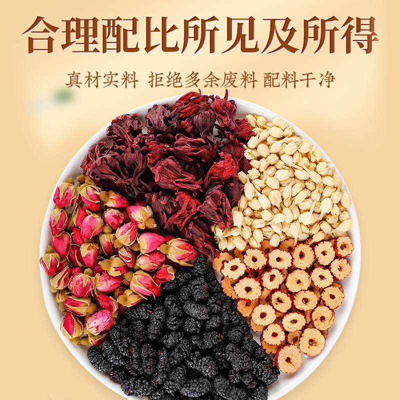 沁晚香重瓣玫瑰花茶女红枣枸杞早c晚a茉莉花茶红枣桑葚干独立茶包