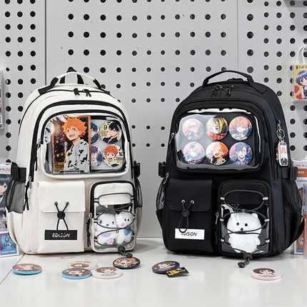 爱迪生中学生痛包书包护脊书包高中生二次元潮流百搭双肩DIY痛包