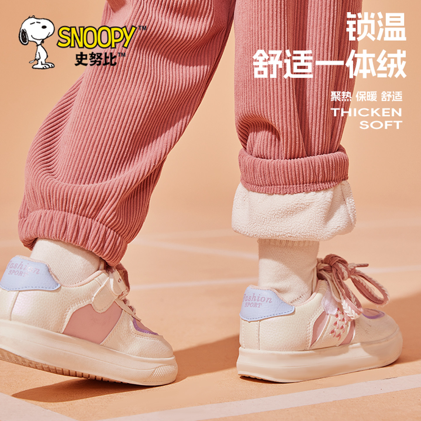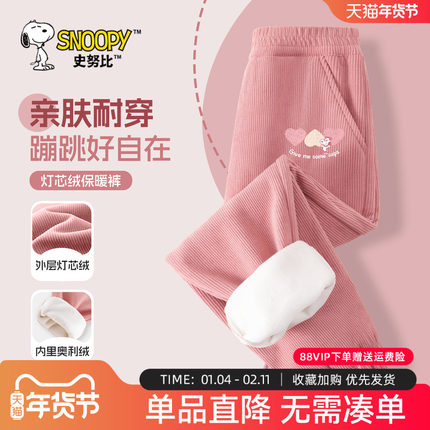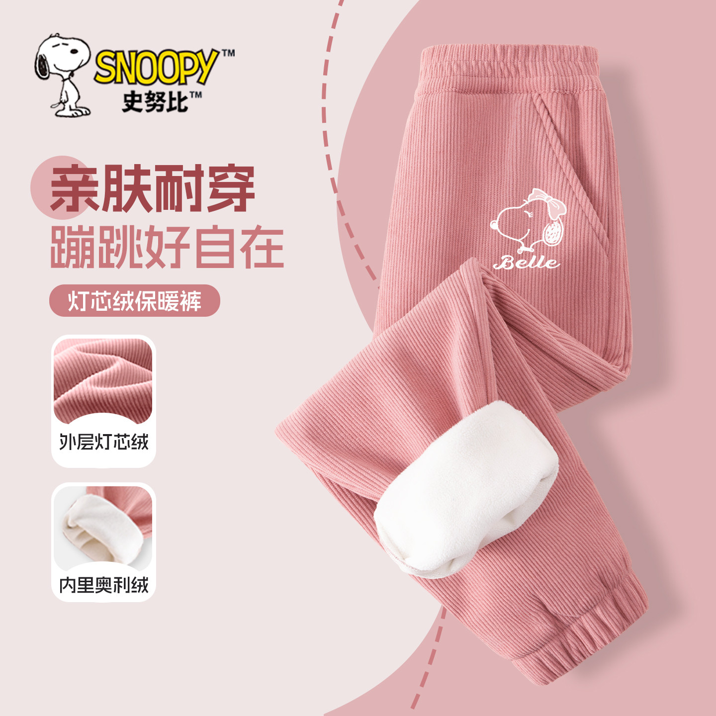 史努比女童超好看加绒裤子2026新款灯芯绒裤儿童加厚一体绒裤秋冬