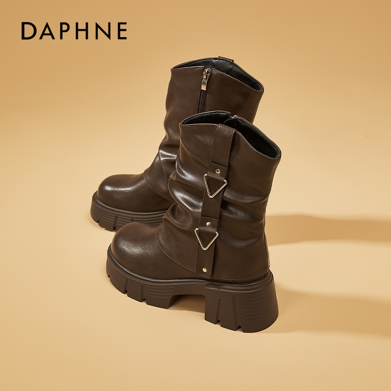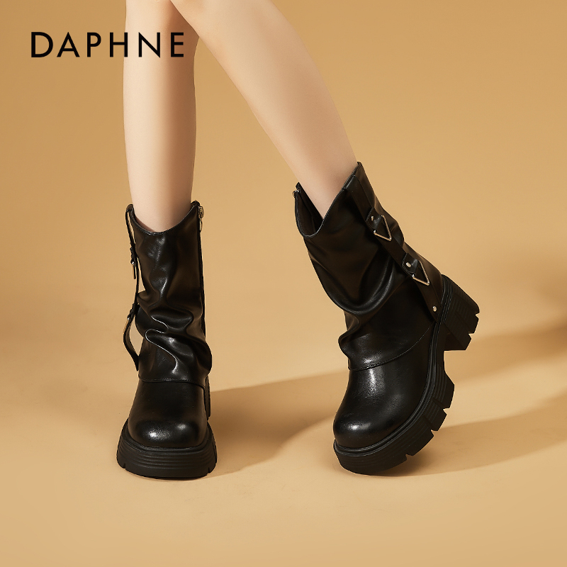 达芙妮厚底马丁靴女2025秋季新款真皮英伦风加绒棉靴子裤管堆堆靴
