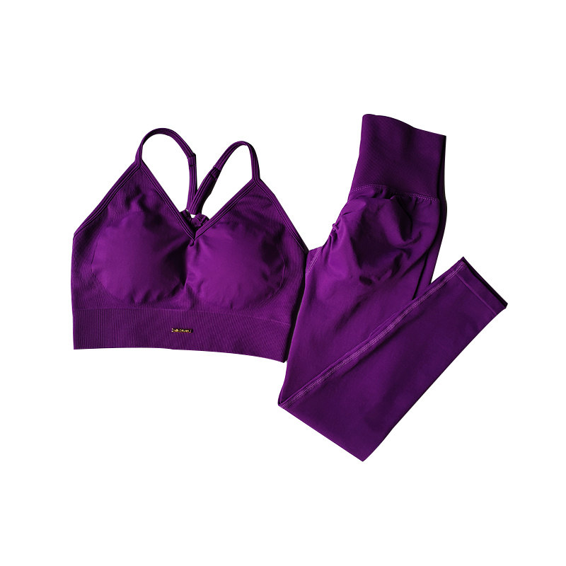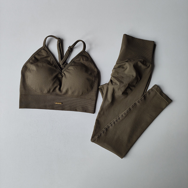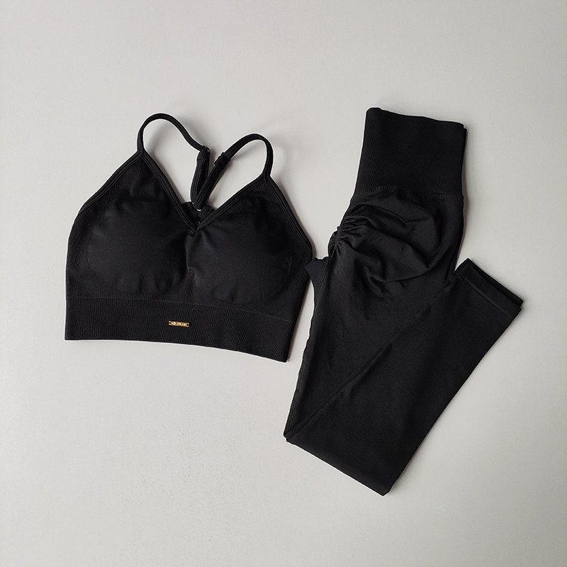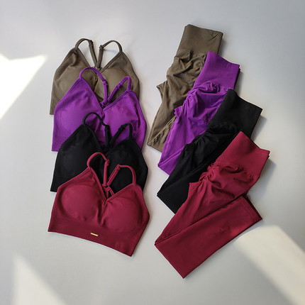 欧美无缝提臀健身套装女V领文胸瑜伽套装速干运动撸铁高腰紧身裤