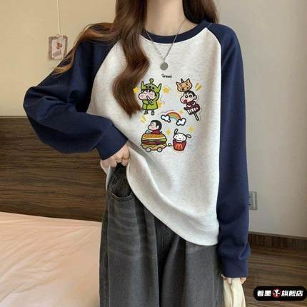 美式插肩袖卫衣大童春秋2025新款初中高中学生纯棉长袖T恤上衣女