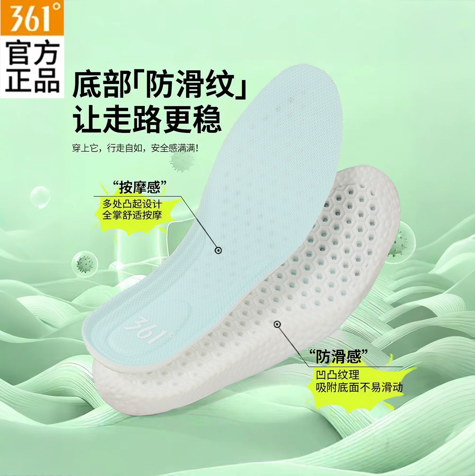 361°正品跑步运动鞋垫男女款吸汗透气除臭软弹减震防滑艾草军训
