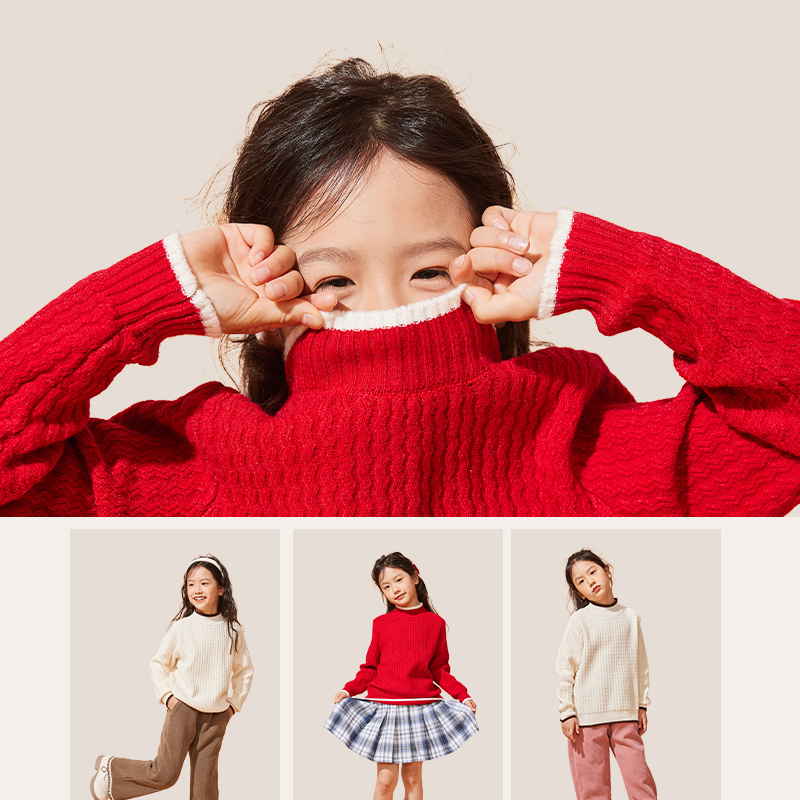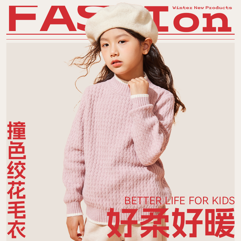 史努比女童2026新款毛衣春秋洋气女孩毛线衣加厚羊毛衫儿童针织衫