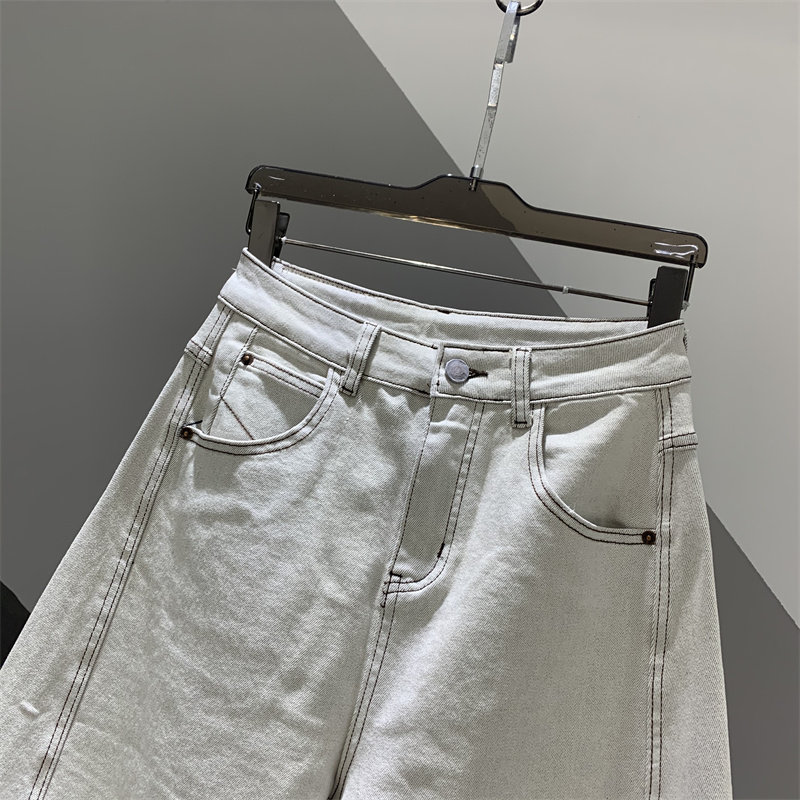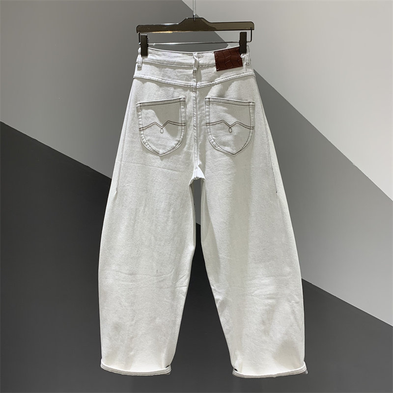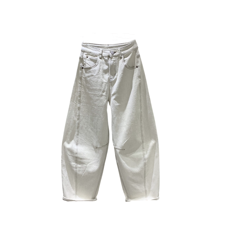 2026年春季新款拼接休闲牛仔弯刀裤女百搭宽松阔腿老爹哈伦裤长裤