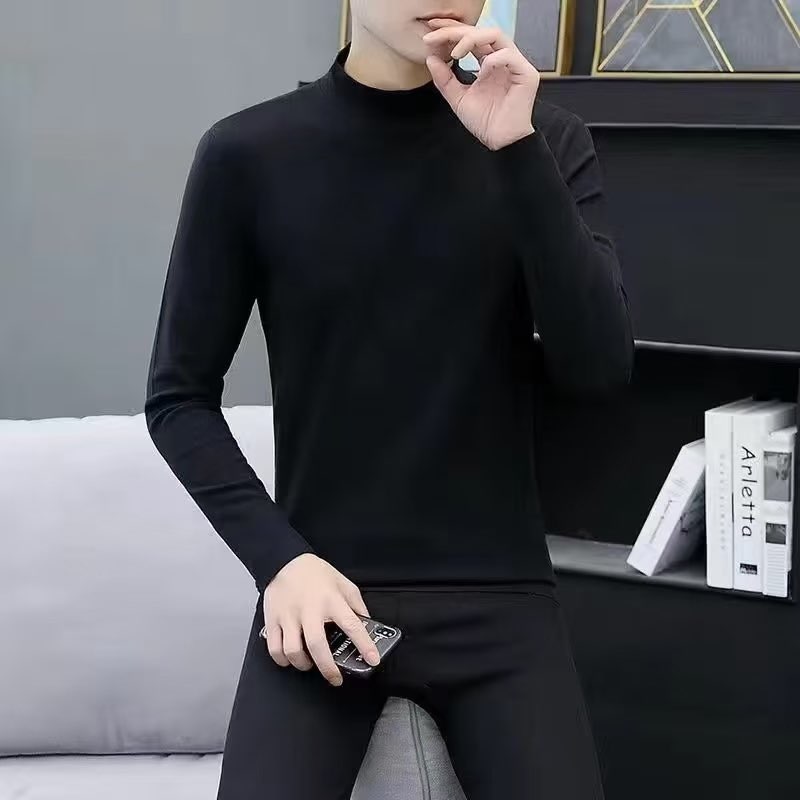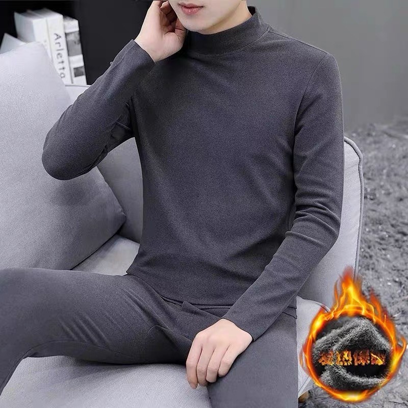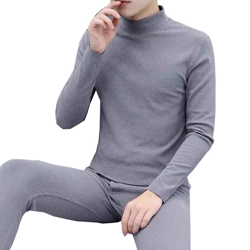 中老年人秋衣秋裤套装男士半高领打底衫纯棉薄款男土中领保暖内衣
