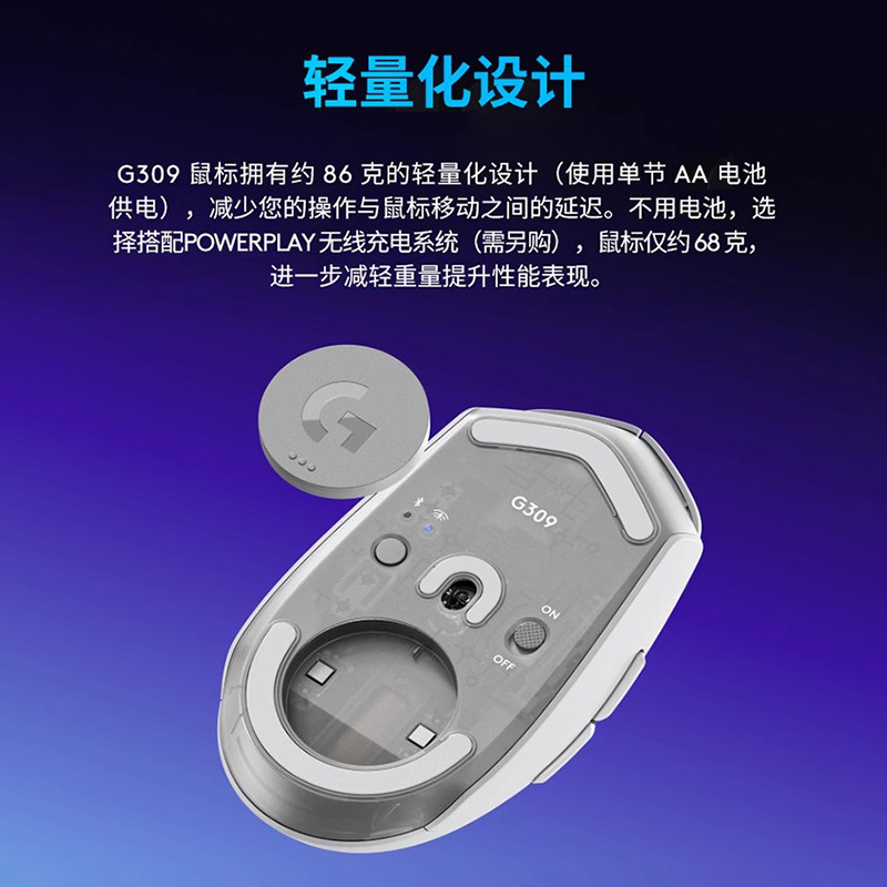 罗技G309无线鼠标小狗屁王电竞游戏轻量化双重续航神里绫华拆包