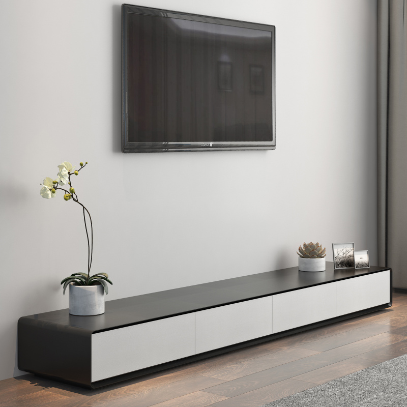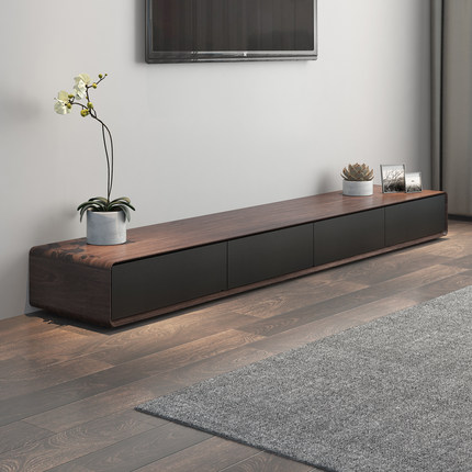 2025新款现代简约电视柜北欧地柜矮柜黑色橡木纹挂墙电视机落地柜