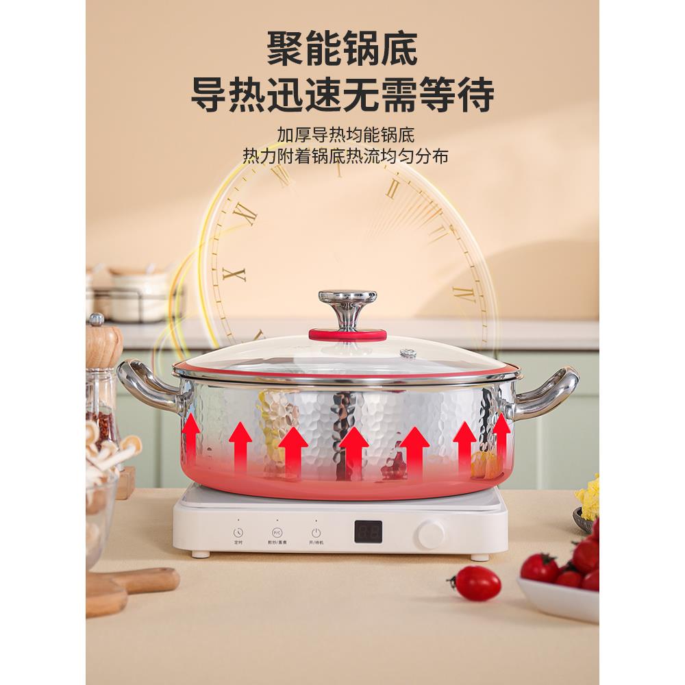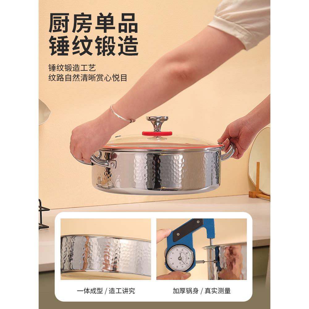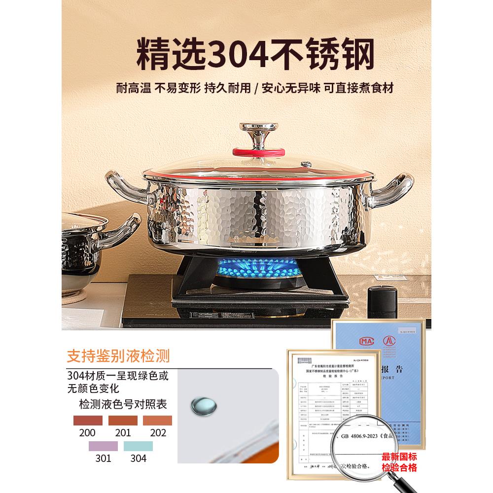 加厚304不锈钢锤纹鸳鸯锅清汤锅火锅家用电磁炉专用锅具火锅盆