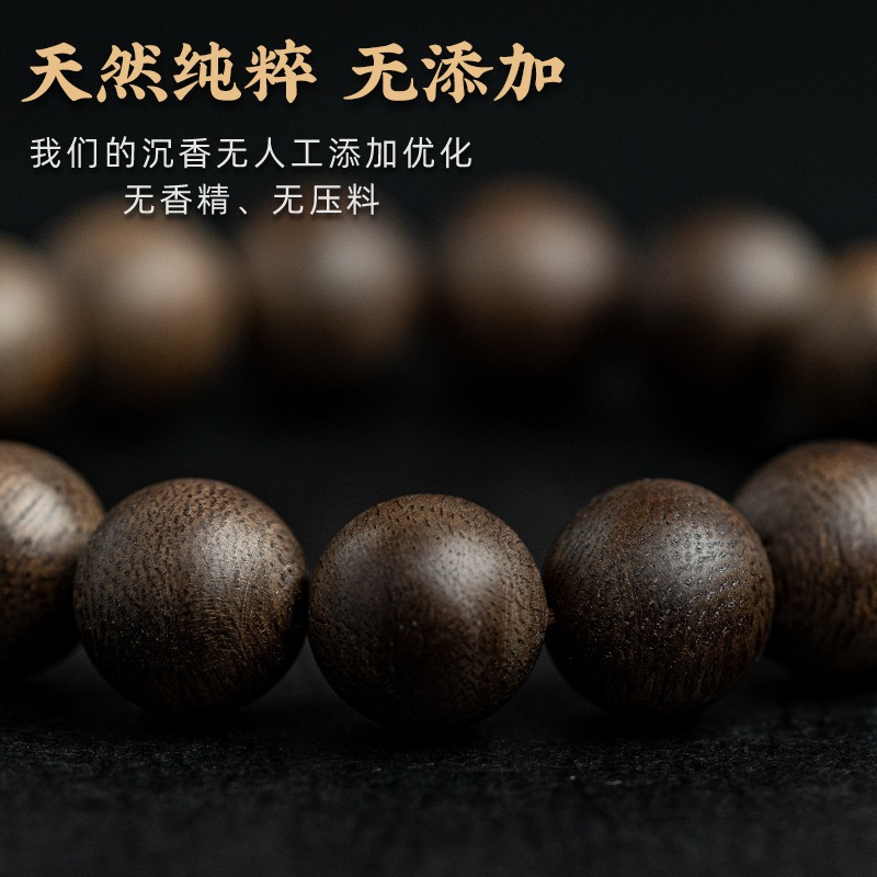 欧洲站天然文莱沉香手串9分沉本命年足金木质佛珠单圈手链女礼物
