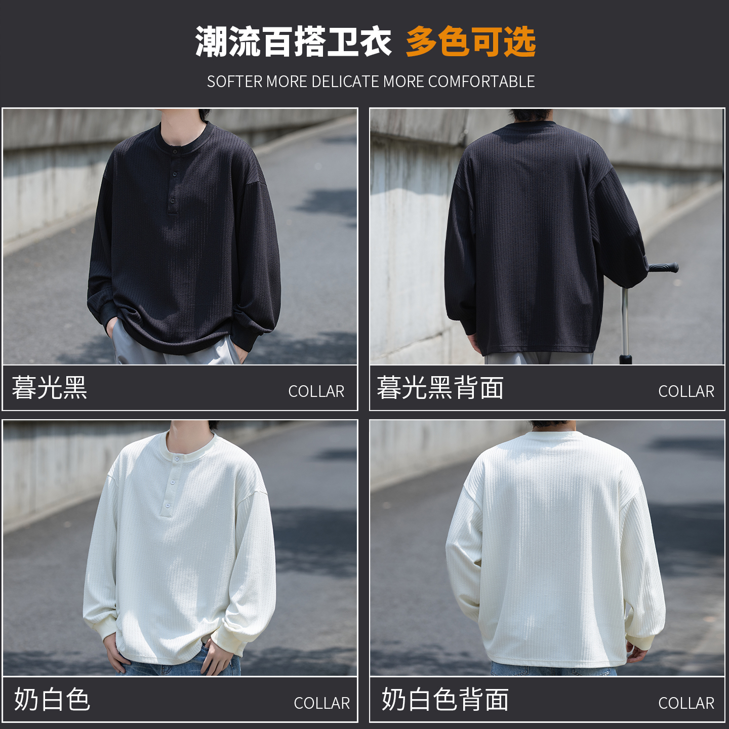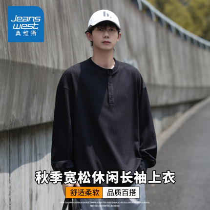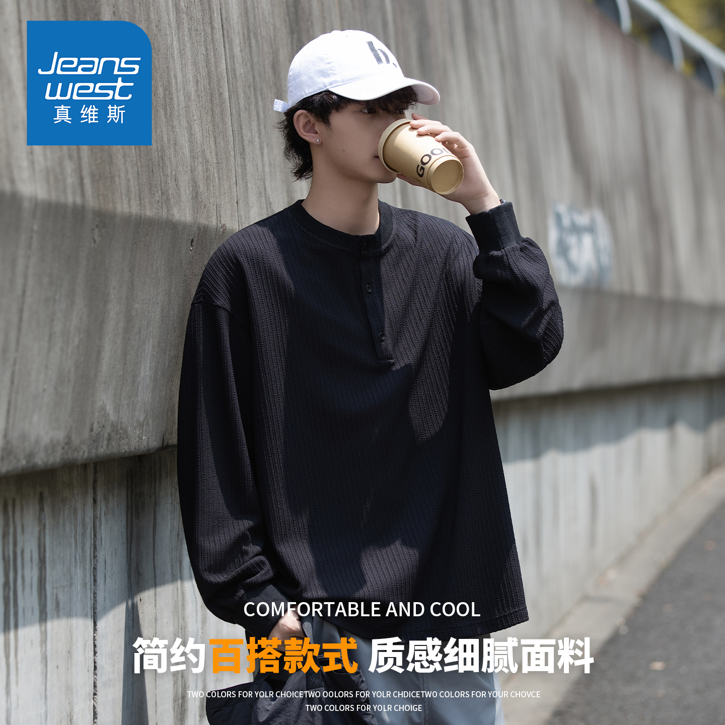 KZH真维斯纽扣长袖T恤男秋季新款宽松百搭打底衫重磅潮流休闲上衣