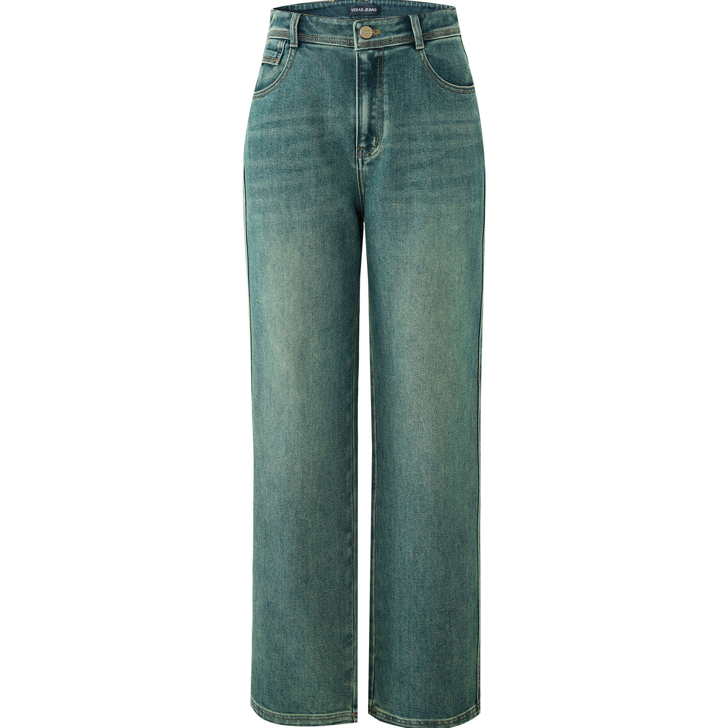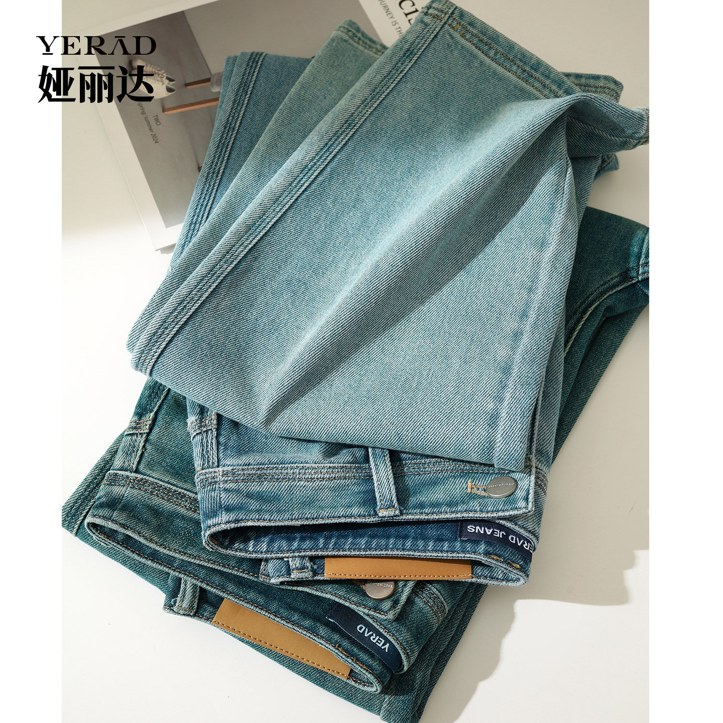 娅丽达窄版阔腿牛仔裤女宽松大码女裤2025秋季新款遮肉直筒裤子潮