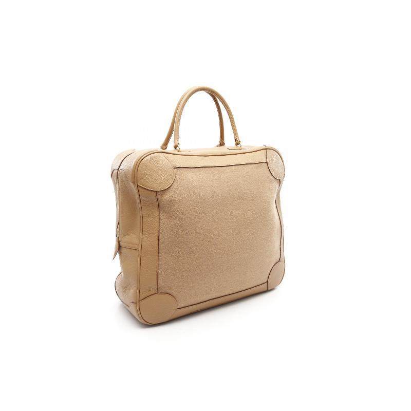 中古Hermes爱马仕女包A级95新handbag手提包羊毛手提包浅褐色