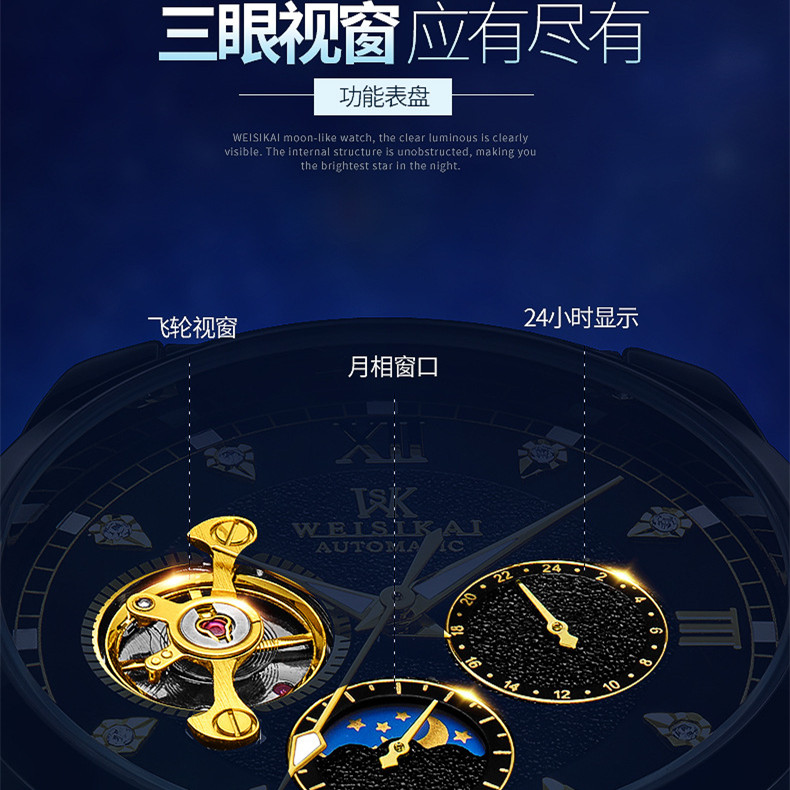 新概念镂空陀飞轮全自动机械表手表男士时尚潮流韩版夜光防水精钢
