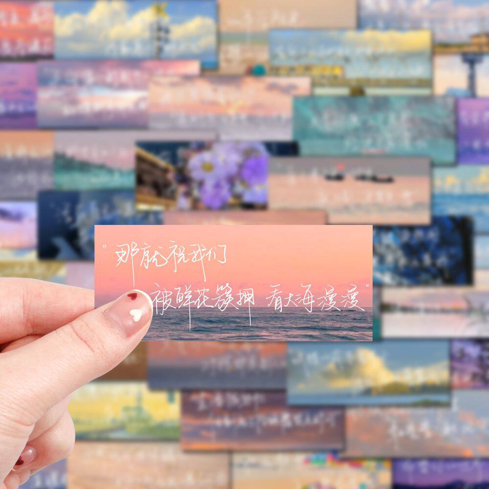 96张温柔星空月亮励志文案语录贴纸小众高级感治愈心情防水贴画