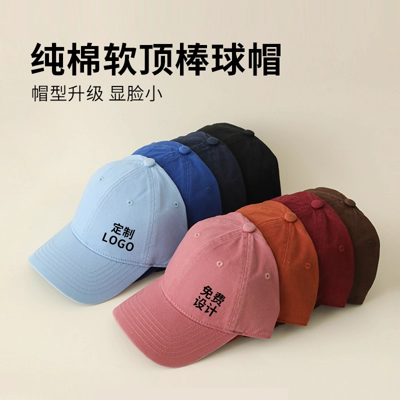 高端磨毛水洗软顶棒球帽定制logo显脸小时尚纯色鸭舌帽子刺绣印字