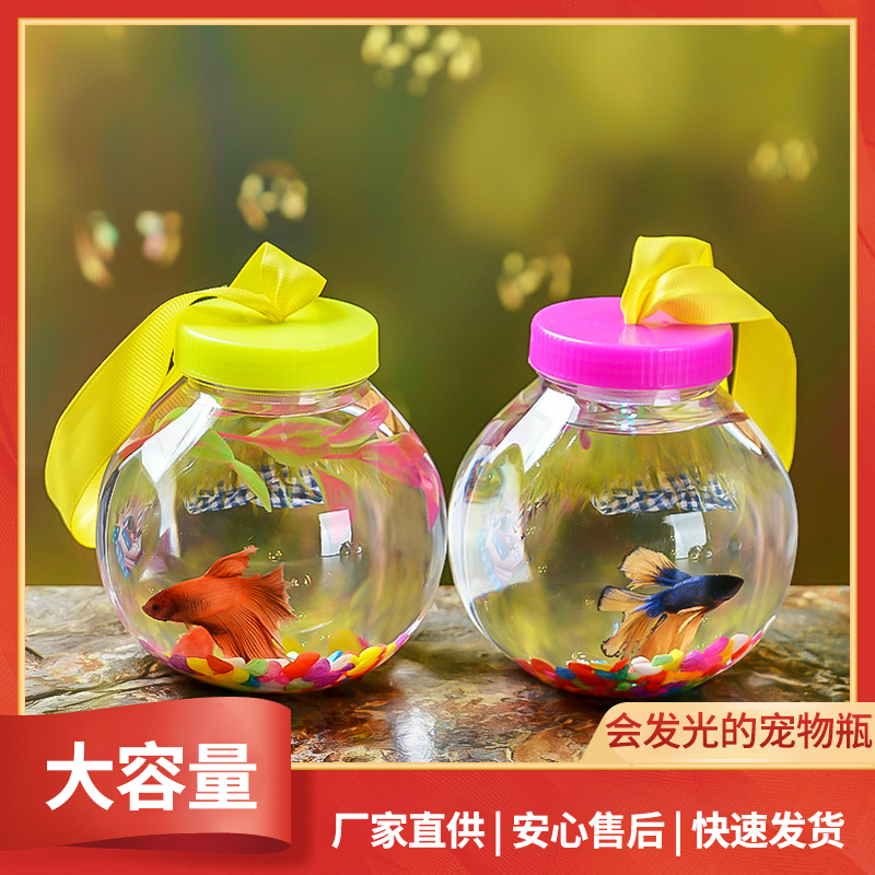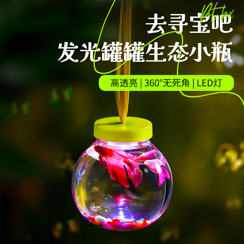 网红夜市地摊发光罐罐QQ鱼瓶 斗鱼缸水母杯水族金鱼缸手提龟盒