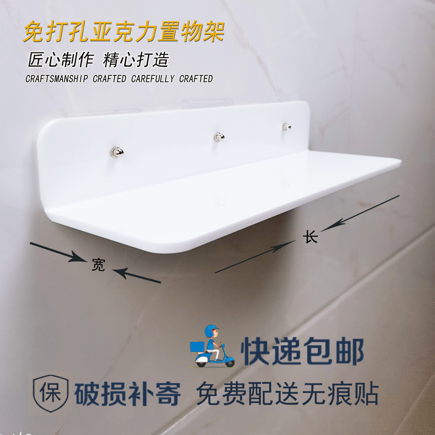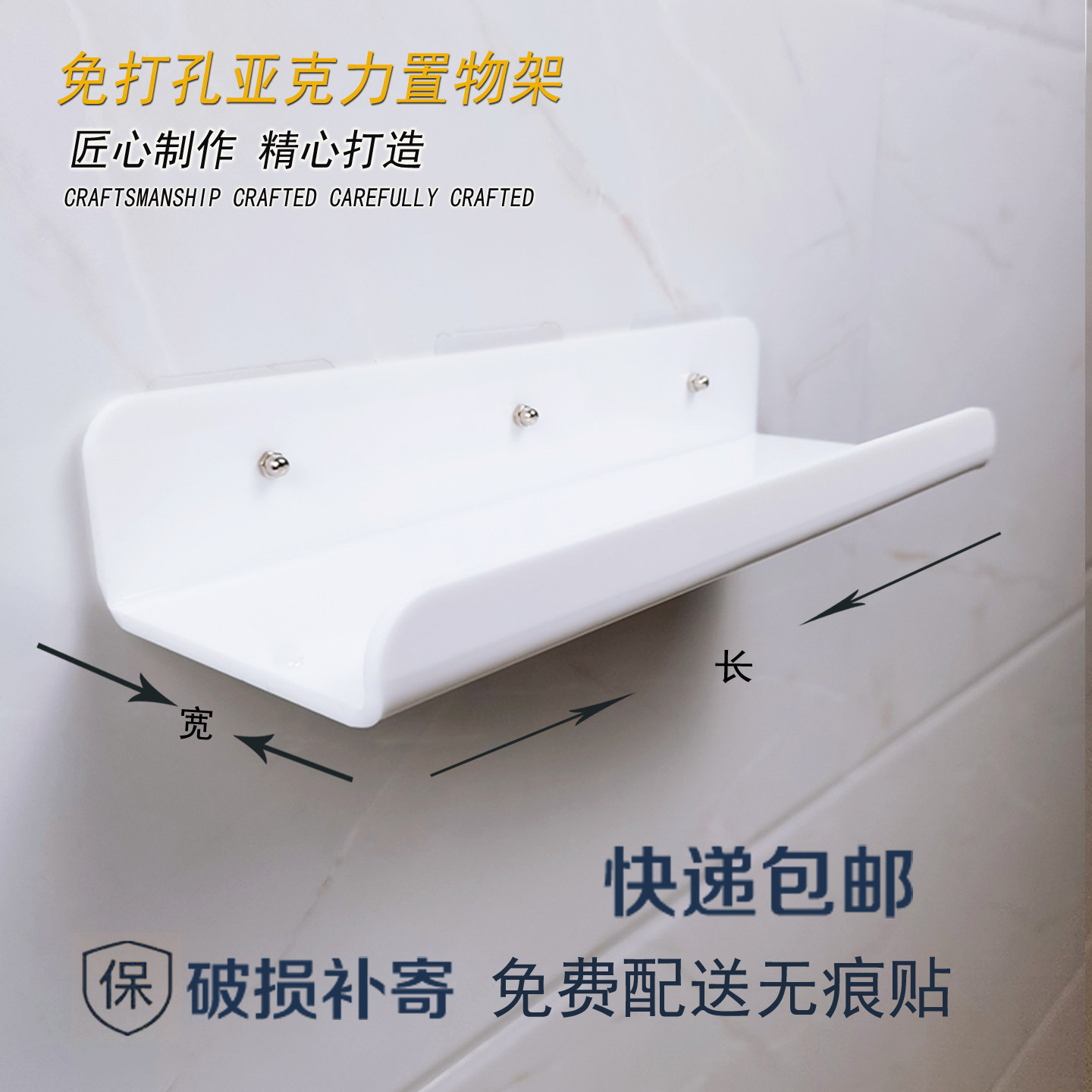 亚克力置物架墙上瓷砖隔板免打孔一字板厨房卫生间浴室一字板定制