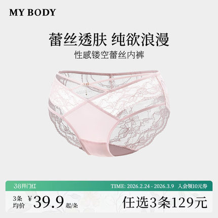 3件129|商场同款MYBODY女士内裤纯欲性感镂空蕾丝内裤低腰三角裤